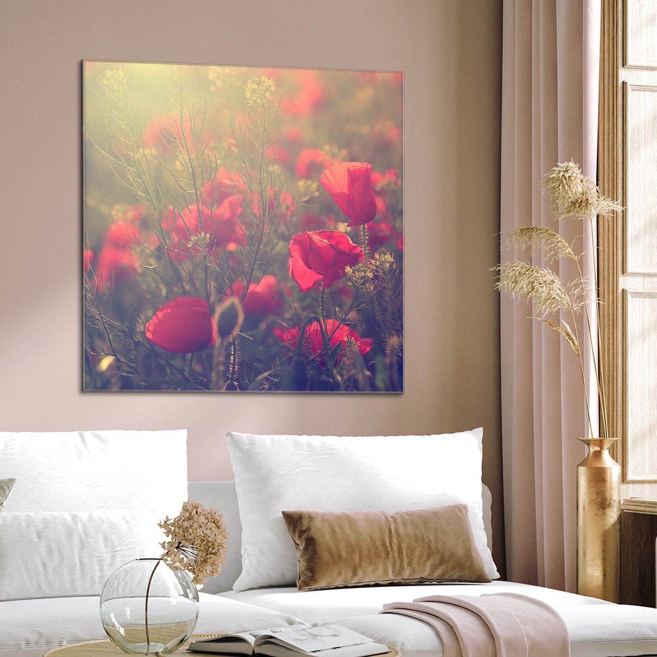 Quadratisches Wandbild aus Glas Mohn
