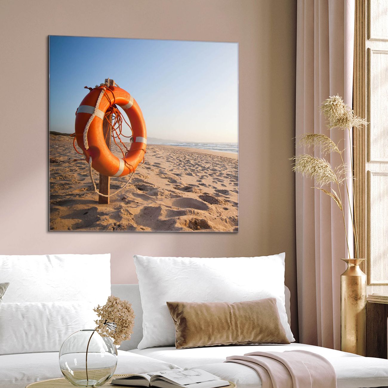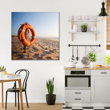 Quadratisches Wandbild aus Glas Morgens Am Strand