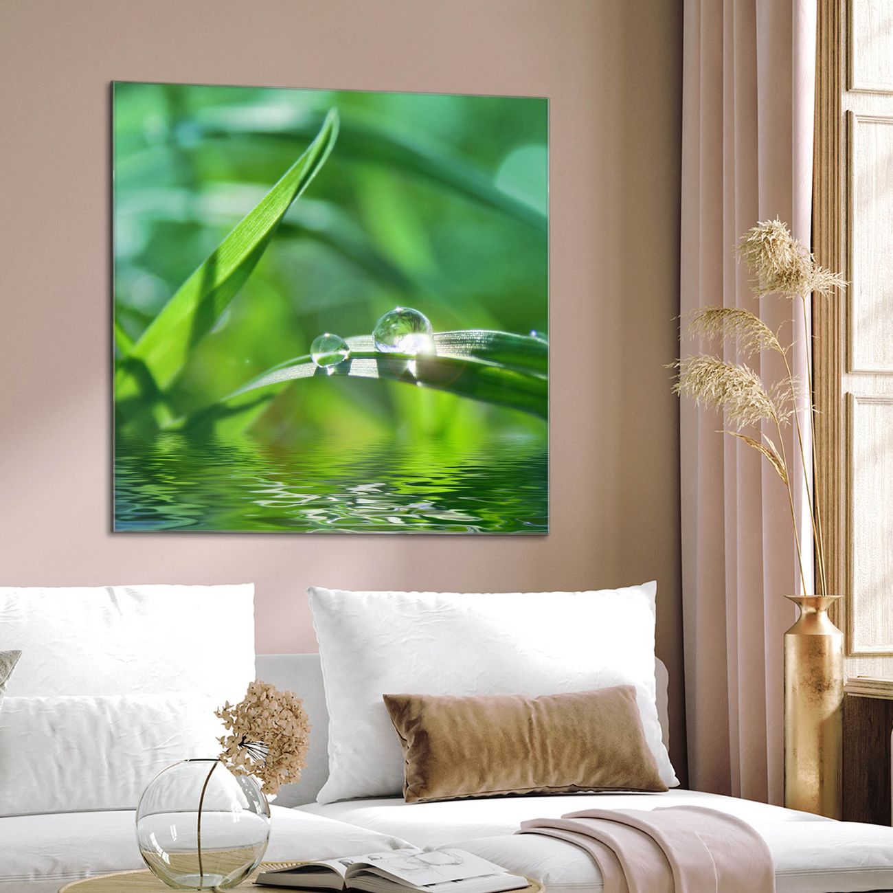 Quadratisches Wandbild aus Glas Morgentau