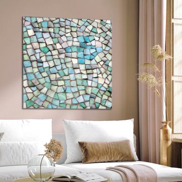 Unsere einzigartigen Glasbilder im Querformat von banjado mit Motiv Mosaik Blau sind der absolute Hingucker! Unsere Banjado Glasbilder sind sehr begehrt, weil sie top verarbeitet sind und sich ganz leicht montieren lassen. Schon mit wenigen Handgriffen hängen sie an der Wand und strahlen mit höchster brillianz. Durch die Ramenlose Herstellung schwebt das Echtglasbild förmlich an der Wand. Das Motiv erscheint besonders ausdrucksstark und hochwertig und ist hinter dem Echtglas geschützt.