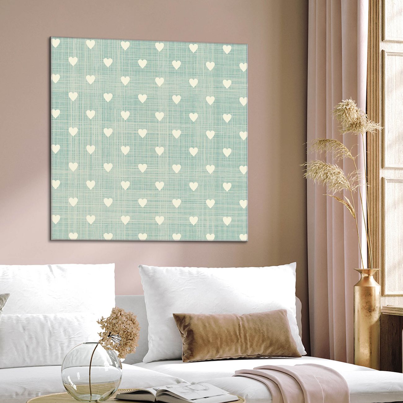 Unsere einzigartigen Glasbilder im Querformat von banjado mit Motiv Muster Herzen sind der absolute Hingucker! Unsere Banjado Glasbilder sind sehr begehrt, weil sie top verarbeitet sind und sich ganz leicht montieren lassen. Schon mit wenigen Handgriffen hängen sie an der Wand und strahlen mit höchster brillianz. Durch die Ramenlose Herstellung schwebt das Echtglasbild förmlich an der Wand. Das Motiv erscheint besonders ausdrucksstark und hochwertig und ist hinter dem Echtglas geschützt.