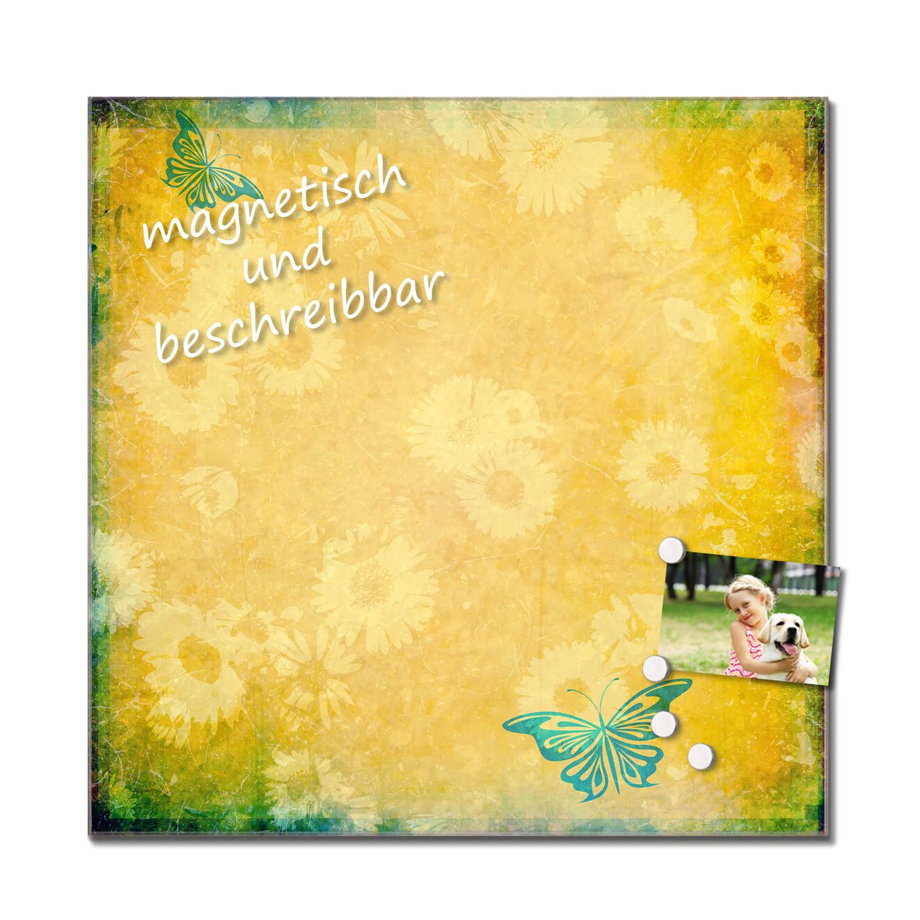Das Glasbild besteht aus 4mm gehärtetem zertifiziertem ESG Sicherheitsglas, die Rückwand aus einem magnetischen Stahlblech. Durch die superflache Bauweise haben Sie die Wahl aus einer Vielzahl von Befestigungsmöglichkeiten. Sie können das Wandbild mit einem Montagekleber superflach an die Wand kleben oder Sie wählen eines unserer passenden Befestigungssets, welches eine optimale Montage garantiert. Durch die mitgelieferten 4 Neodym-Magnete ist Ihr Glaswandbild sofort einsatzbereit. Wir sind ein kleines Team aus dem Herzen von Sachsen und fertigen alle Artikel von Hand für Sie an. Wir entwerfen unsere Produkte selbst mit großer Liebe zum Detail.