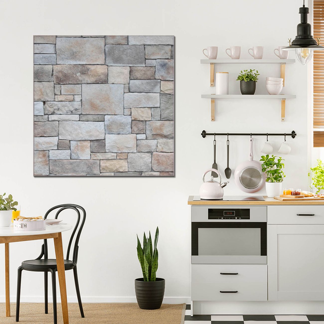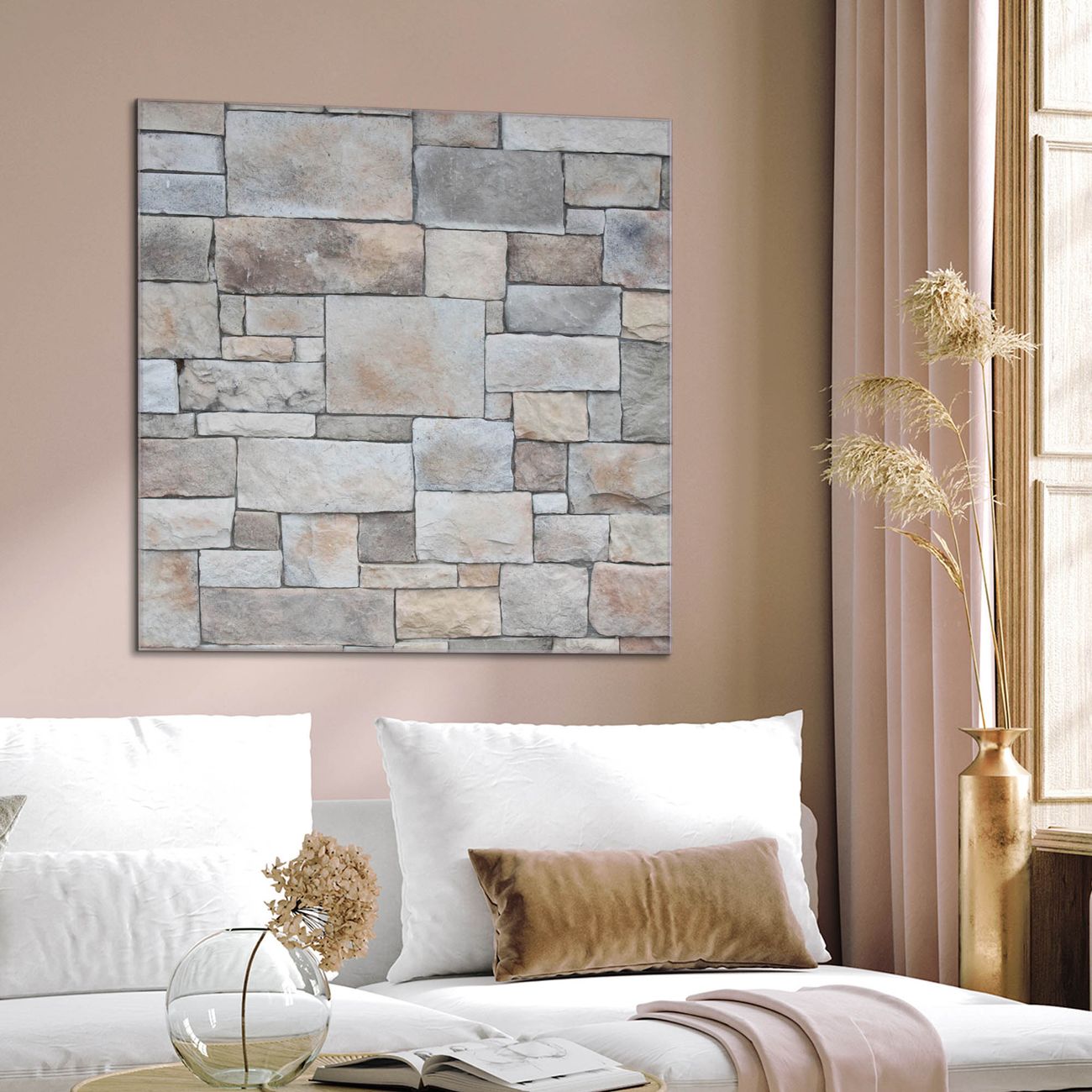 Quadratisches Wandbild aus Glas Natursteinmauer