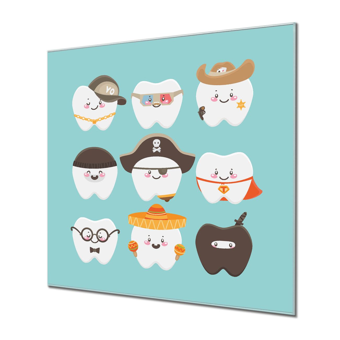 Quadratisches Wandbild aus Glas Neun Zähne