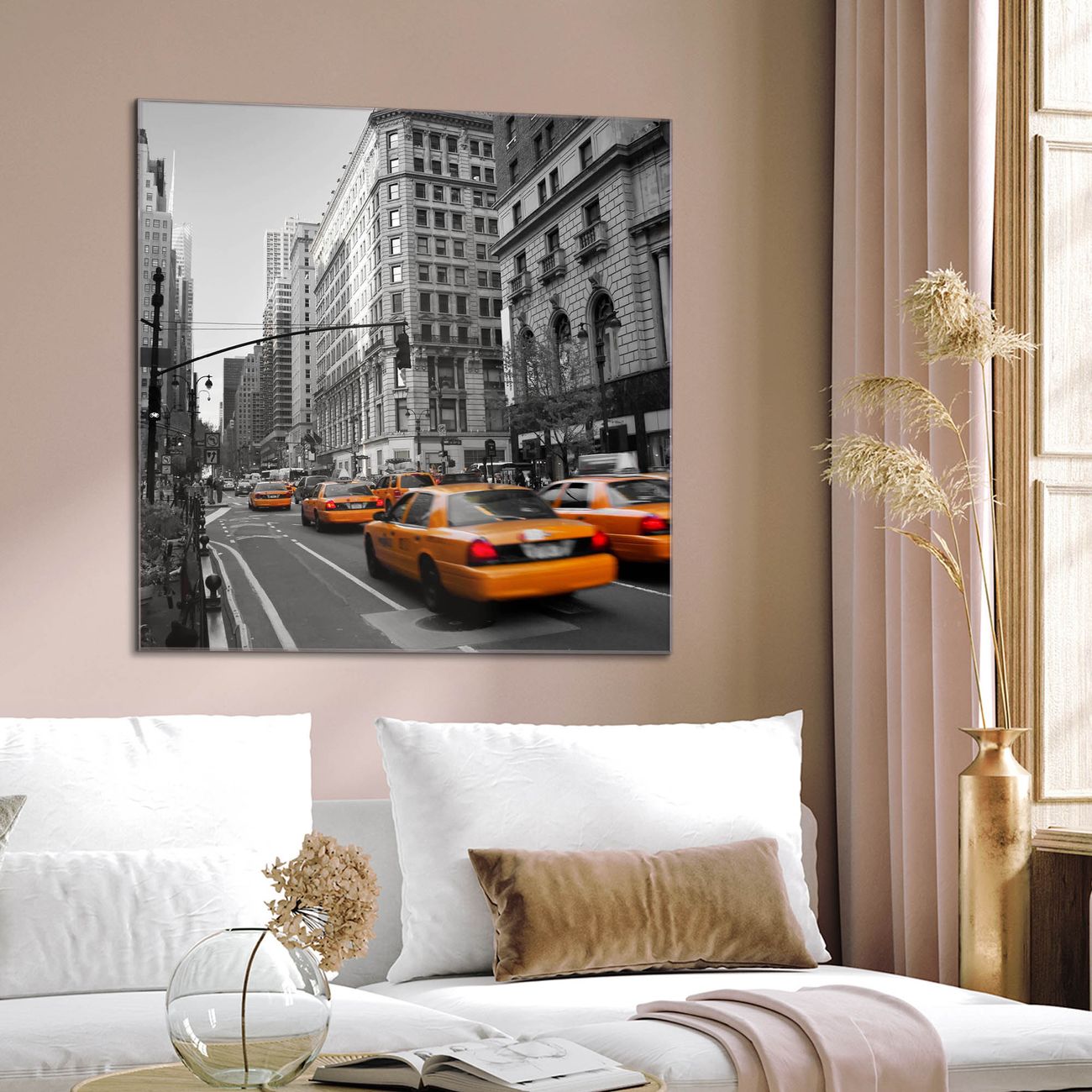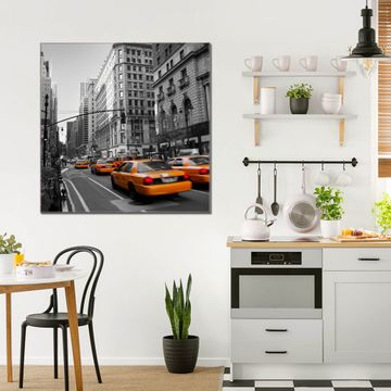 Quadratisches Wandbild aus Glas New York Taxi