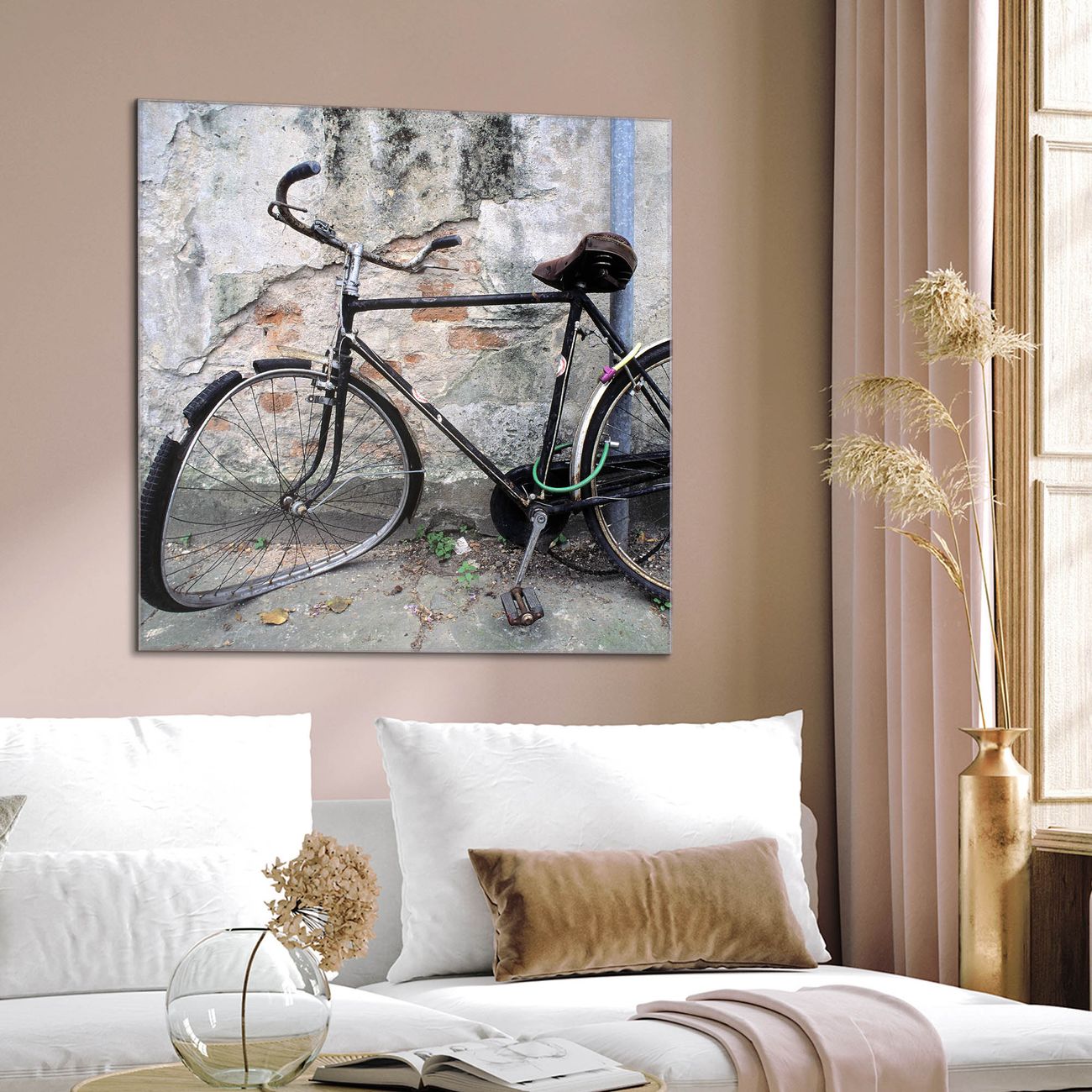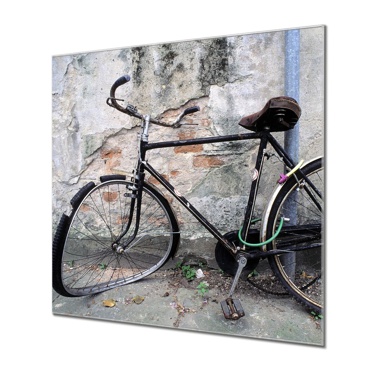 Quadratisches Wandbild aus Glas Nostalgie Rad