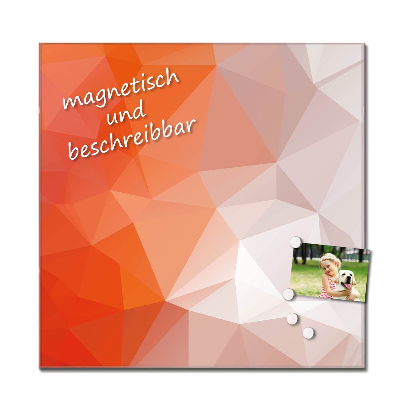Unsere einzigartigen Glasbilder im Querformat von banjado mit Motiv Orange Polygon sind der absolute Hingucker! Unsere Banjado Glasbilder sind sehr begehrt, weil sie top verarbeitet sind und sich ganz leicht montieren lassen. Schon mit wenigen Handgriffen hängen sie an der Wand und strahlen mit höchster brillianz. Durch die Ramenlose Herstellung schwebt das Echtglasbild förmlich an der Wand. Das Motiv erscheint besonders ausdrucksstark und hochwertig und ist hinter dem Echtglas geschützt.