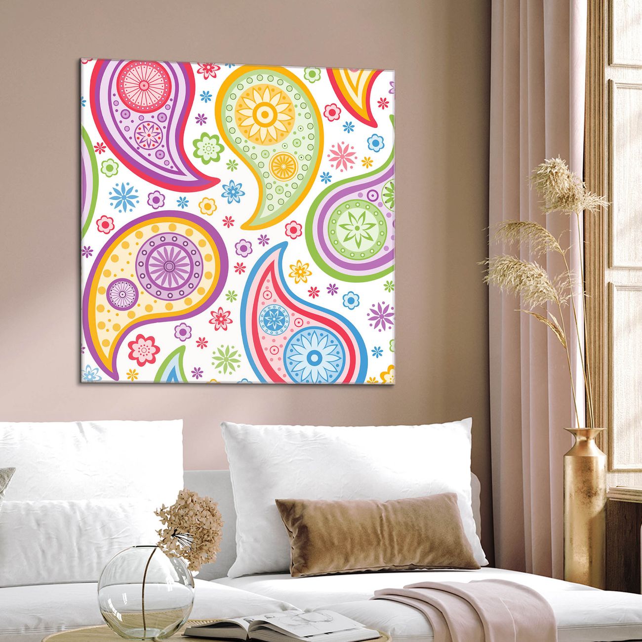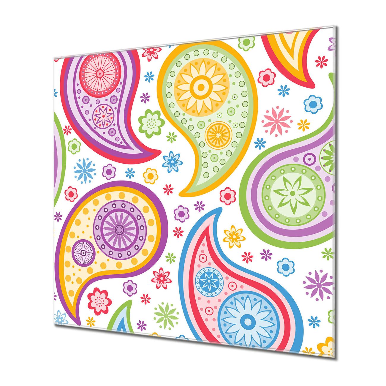 Unsere einzigartigen Glasbilder im Querformat von banjado mit Motiv Paisley bunt sind der absolute Hingucker! Unsere Banjado Glasbilder sind sehr begehrt, weil sie top verarbeitet sind und sich ganz leicht montieren lassen. Schon mit wenigen Handgriffen hängen sie an der Wand und strahlen mit höchster brillianz. Durch die Ramenlose Herstellung schwebt das Echtglasbild förmlich an der Wand. Das Motiv erscheint besonders ausdrucksstark und hochwertig und ist hinter dem Echtglas geschützt.