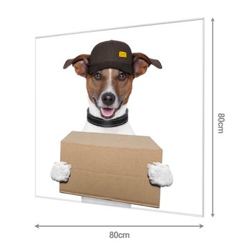 Unsere einzigartigen Glasbilder im Querformat von banjado mit Motiv Paketdienst Jack Russel sind der absolute Hingucker! Unsere Banjado Glasbilder sind sehr begehrt, weil sie top verarbeitet sind und sich ganz leicht montieren lassen. Schon mit wenigen Handgriffen hängen sie an der Wand und strahlen mit höchster brillianz. Durch die Ramenlose Herstellung schwebt das Echtglasbild förmlich an der Wand. Das Motiv erscheint besonders ausdrucksstark und hochwertig und ist hinter dem Echtglas geschützt.