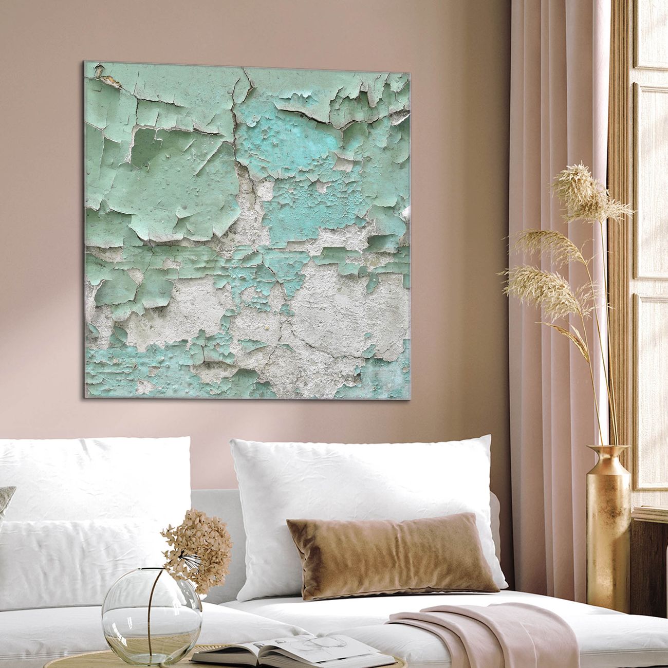 Quadratisches Wandbild aus Glas Patina Mint