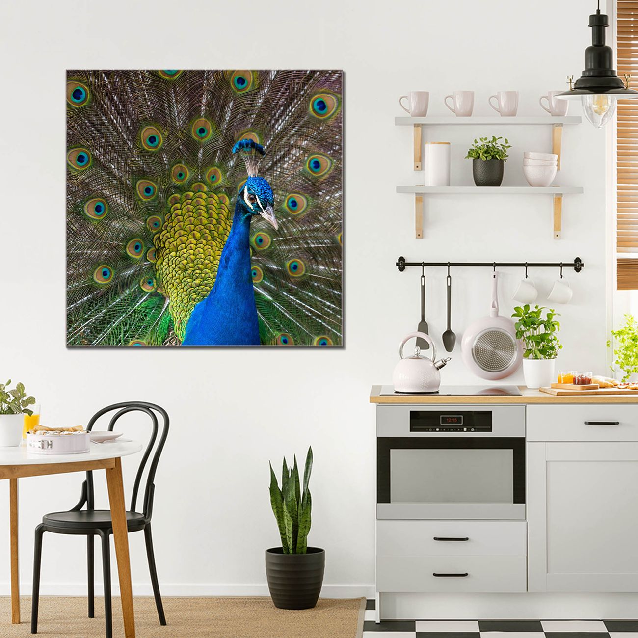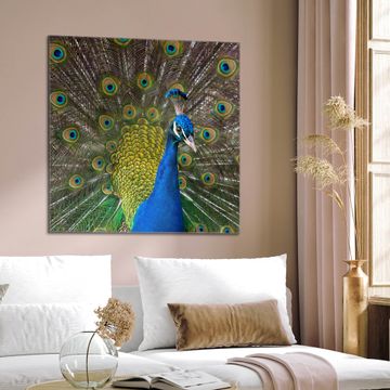 Unsere einzigartigen Glasbilder im Querformat von banjado mit Motiv Pfau sind der absolute Hingucker! Unsere Banjado Glasbilder sind sehr begehrt, weil sie top verarbeitet sind und sich ganz leicht montieren lassen. Schon mit wenigen Handgriffen hängen sie an der Wand und strahlen mit höchster brillianz. Durch die Ramenlose Herstellung schwebt das Echtglasbild förmlich an der Wand. Das Motiv erscheint besonders ausdrucksstark und hochwertig und ist hinter dem Echtglas geschützt.