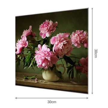 Quadratisches Wandbild aus Glas Pinke Pfingstrosen