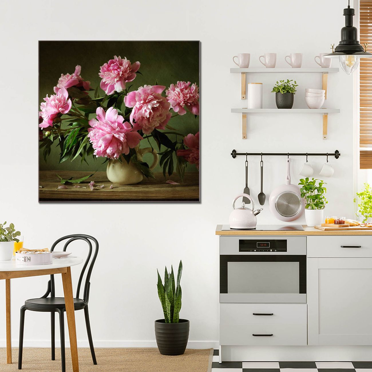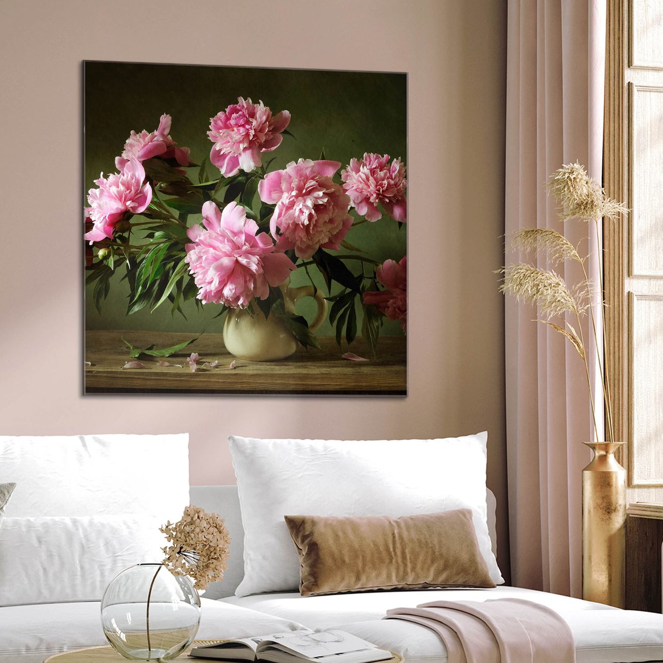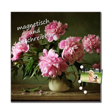 Quadratisches Wandbild aus Glas Pinke Pfingstrosen