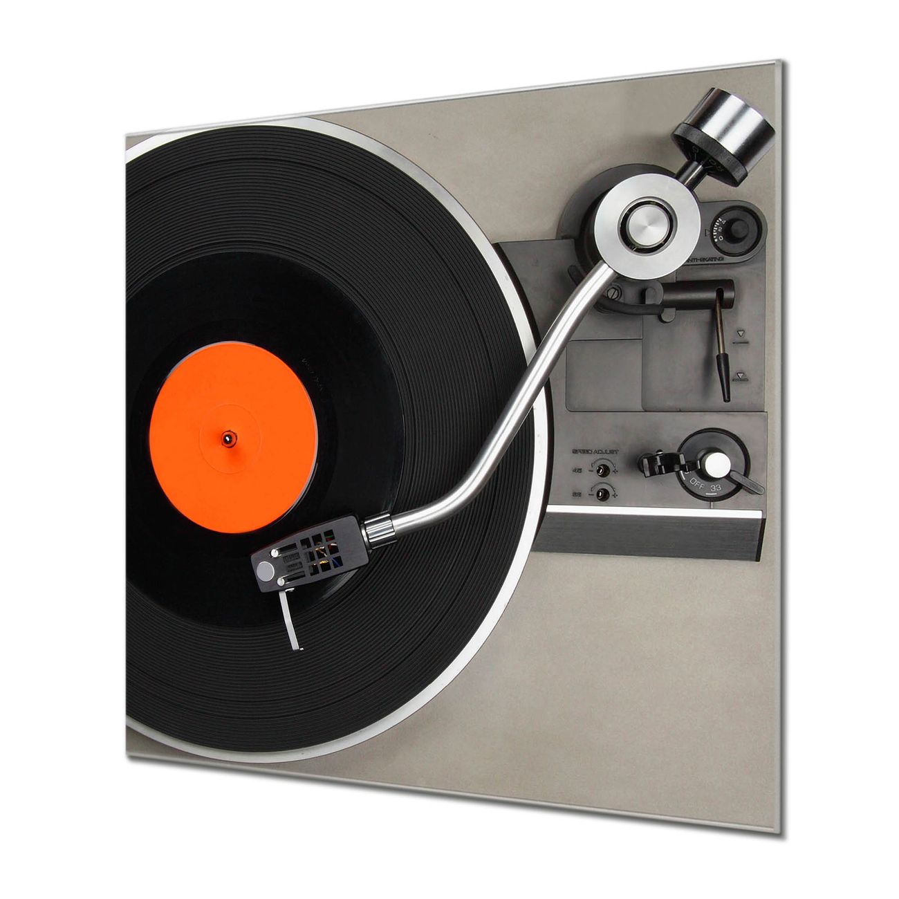 Quadratisches Wandbild aus Glas Plattenspieler