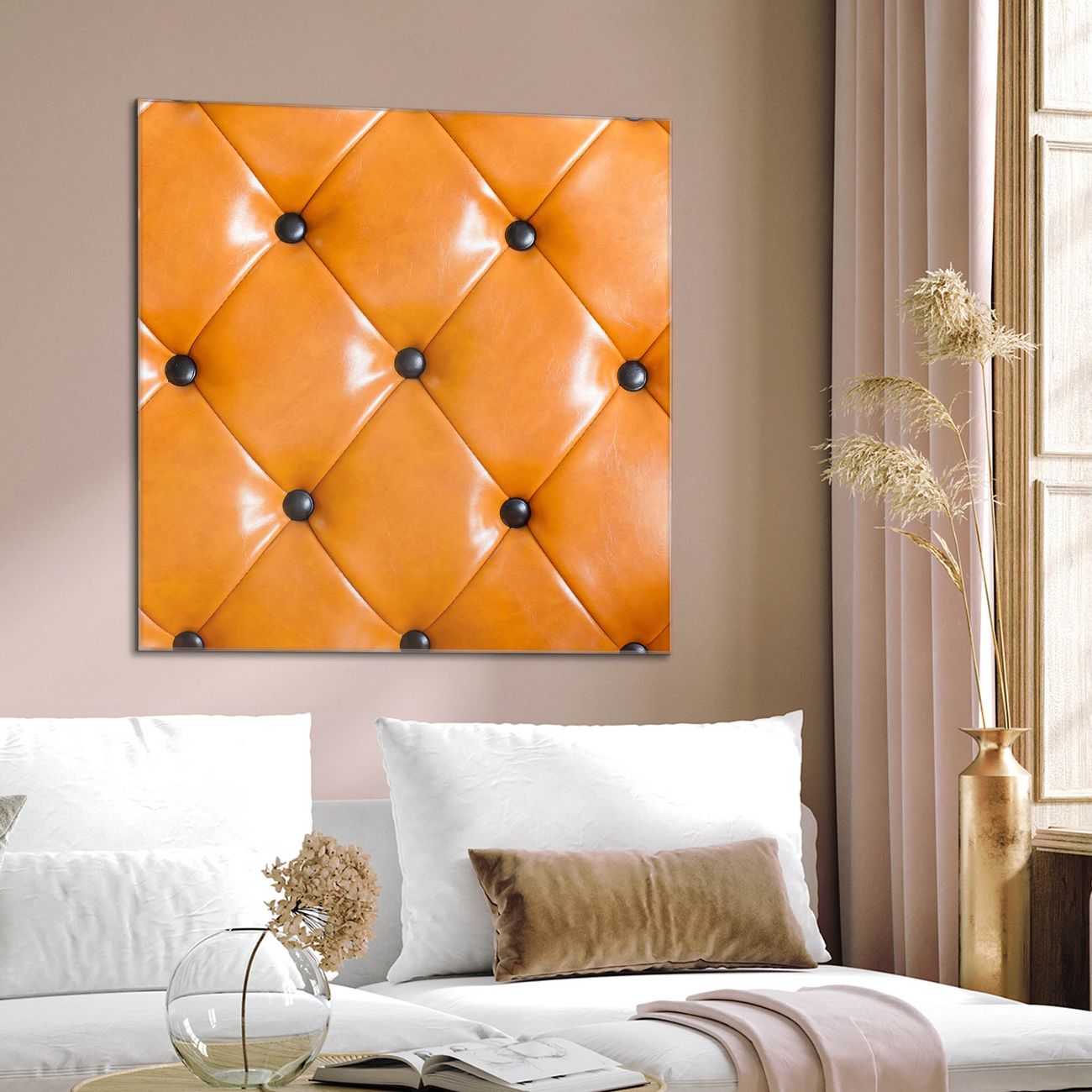 Unsere einzigartigen Glasbilder im Querformat von banjado mit Motiv Polster Orange sind der absolute Hingucker! Unsere Banjado Glasbilder sind sehr begehrt, weil sie top verarbeitet sind und sich ganz leicht montieren lassen. Schon mit wenigen Handgriffen hängen sie an der Wand und strahlen mit höchster brillianz. Durch die Ramenlose Herstellung schwebt das Echtglasbild förmlich an der Wand. Das Motiv erscheint besonders ausdrucksstark und hochwertig und ist hinter dem Echtglas geschützt.