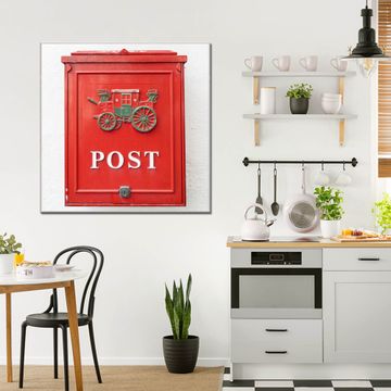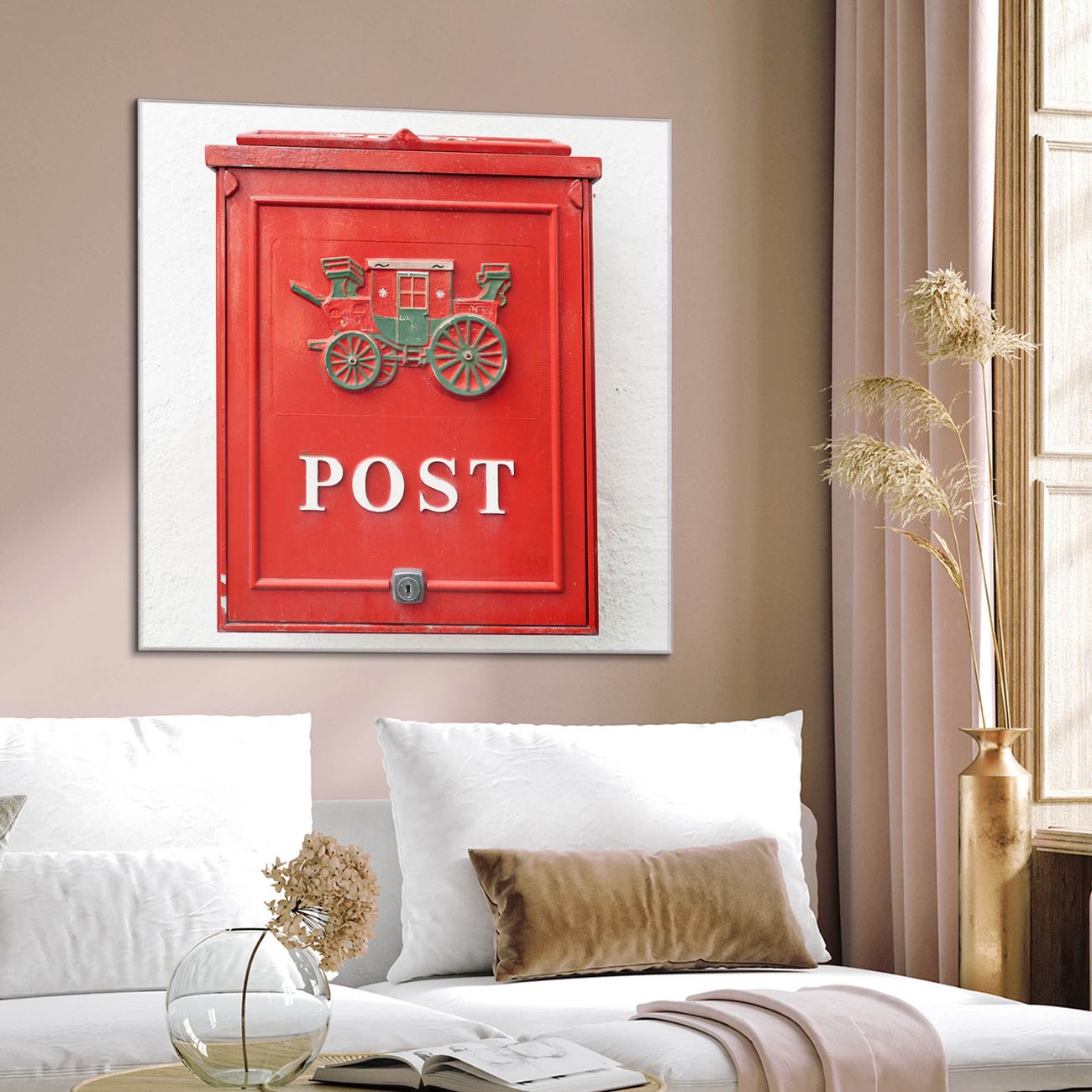 Quadratisches Wandbild aus Glas Postkasten Nostalgie