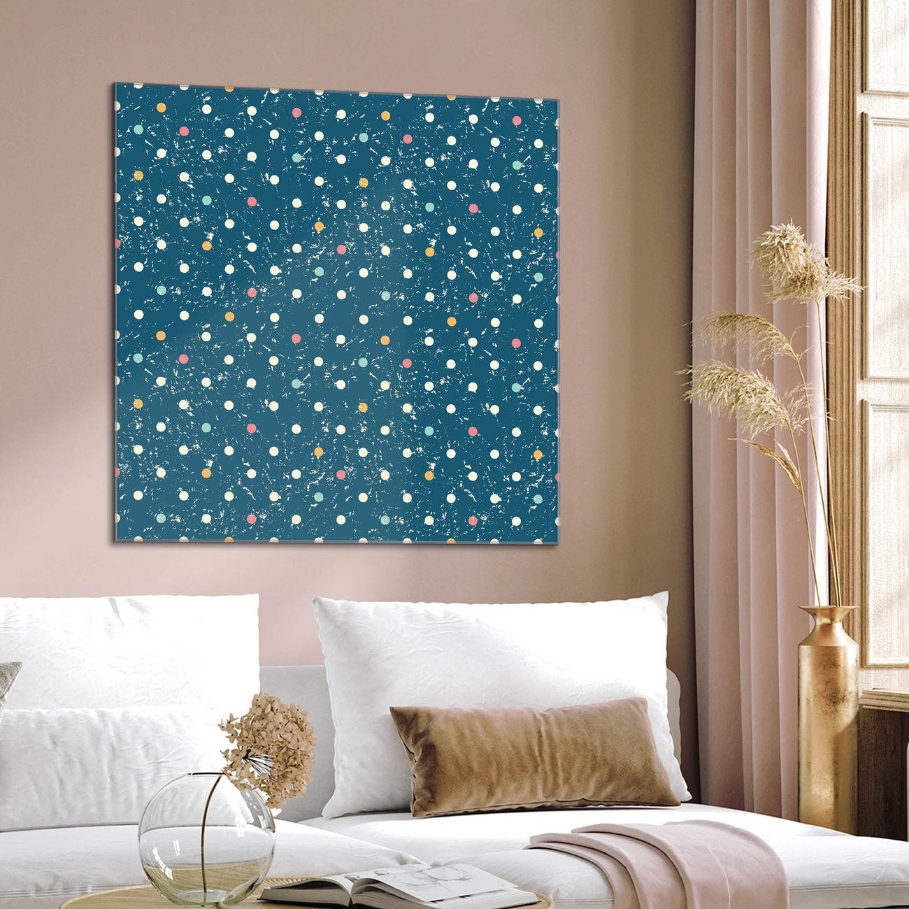 Quadratisches Wandbild aus Glas Punkte auf Blau