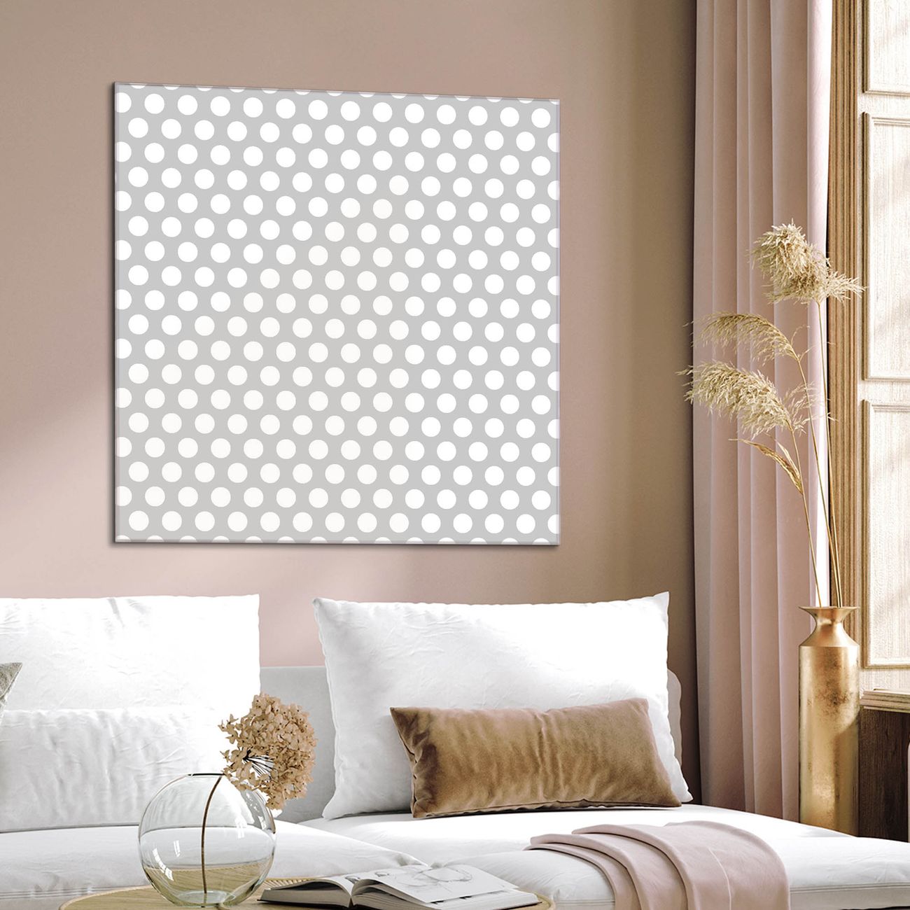 Unsere einzigartigen Glasbilder im Querformat von banjado mit Motiv Punkte Grau sind der absolute Hingucker! Unsere Banjado Glasbilder sind sehr begehrt, weil sie top verarbeitet sind und sich ganz leicht montieren lassen. Schon mit wenigen Handgriffen hängen sie an der Wand und strahlen mit höchster brillianz. Durch die Ramenlose Herstellung schwebt das Echtglasbild förmlich an der Wand. Das Motiv erscheint besonders ausdrucksstark und hochwertig und ist hinter dem Echtglas geschützt.