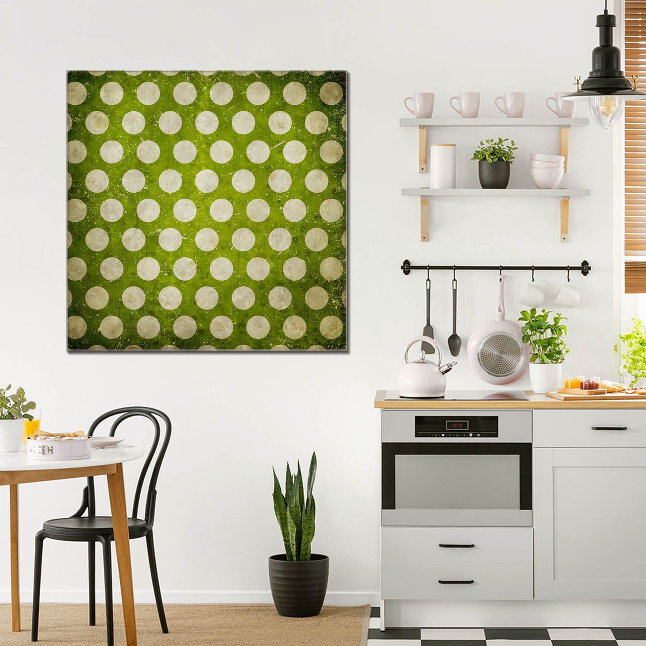 Quadratisches Wandbild aus Glas Punkte Grün Vintage