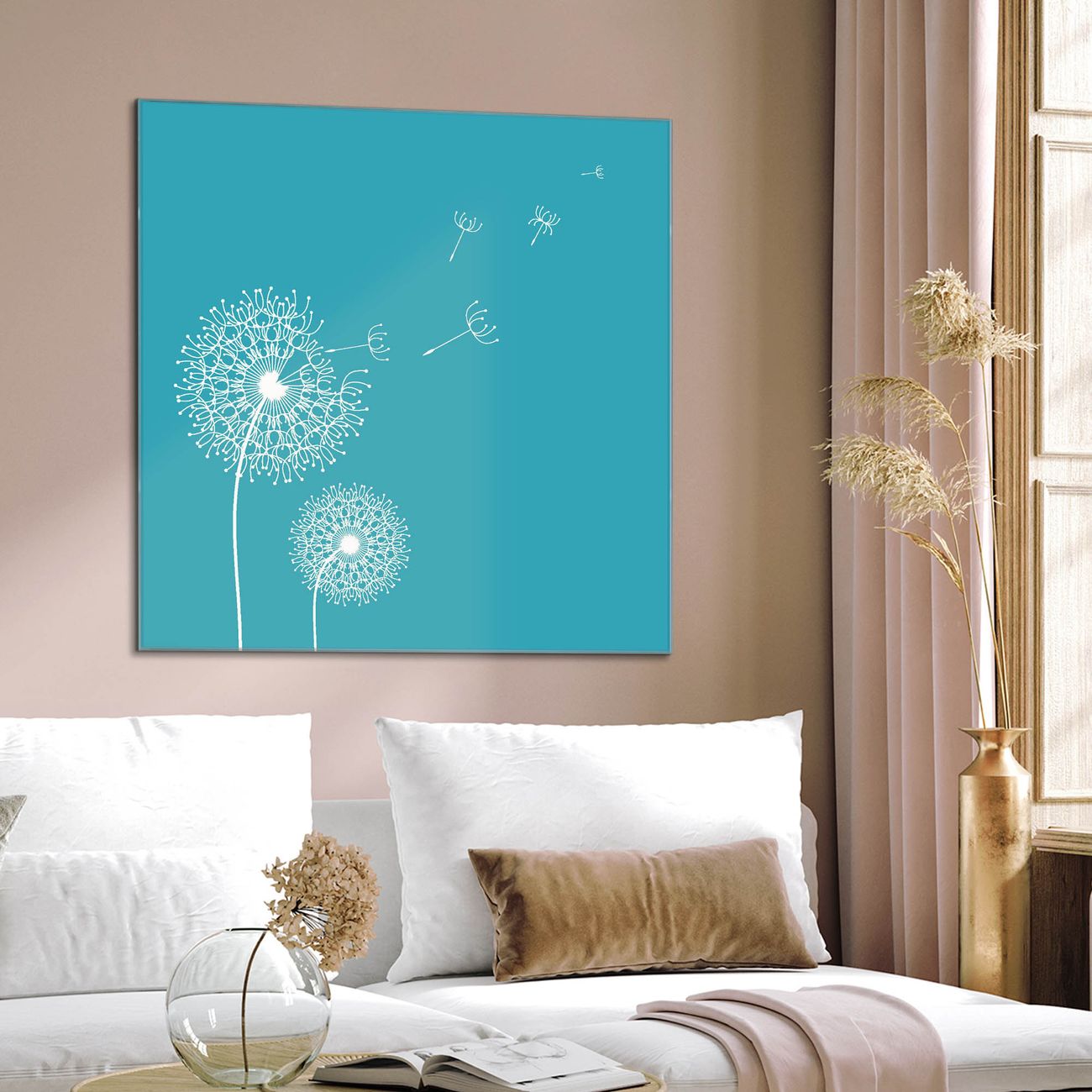 Quadratisches Wandbild aus Glas Pusteblume 4