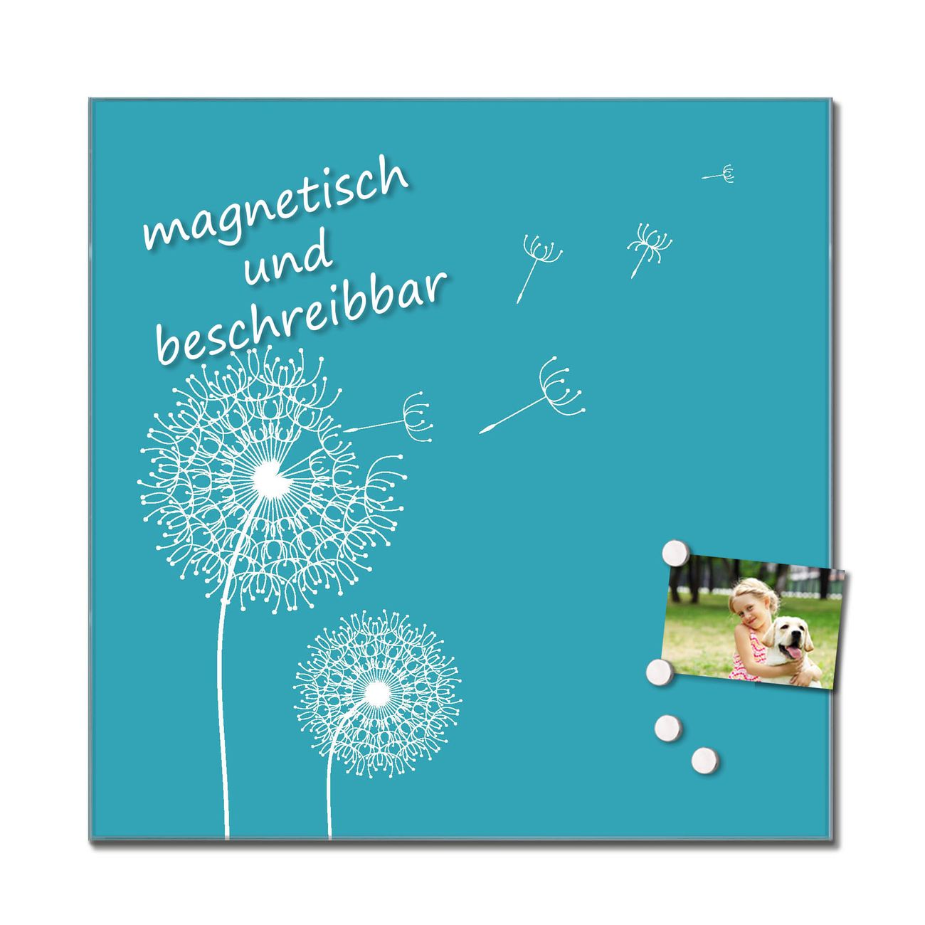 Das Glasbild besteht aus 4mm gehärtetem zertifiziertem ESG Sicherheitsglas, die Rückwand aus einem magnetischen Stahlblech. Durch die superflache Bauweise haben Sie die Wahl aus einer Vielzahl von Befestigungsmöglichkeiten. Sie können das Wandbild mit einem Montagekleber superflach an die Wand kleben oder Sie wählen eines unserer passenden Befestigungssets, welches eine optimale Montage garantiert. Durch die mitgelieferten 4 Neodym-Magnete ist Ihr Glaswandbild sofort einsatzbereit. Wir sind ein kleines Team aus dem Herzen von Sachsen und fertigen alle Artikel von Hand für Sie an. Wir entwerfen unsere Produkte selbst mit großer Liebe zum Detail.