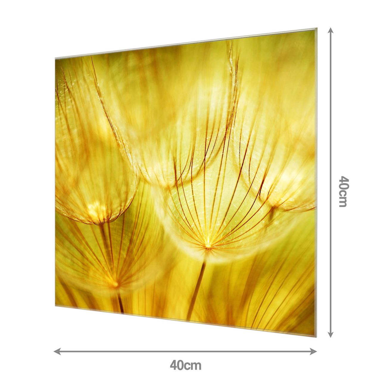Quadratisches Wandbild aus Glas Pusteblumen Gold