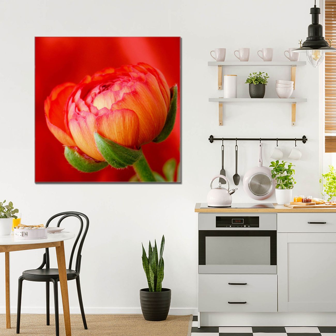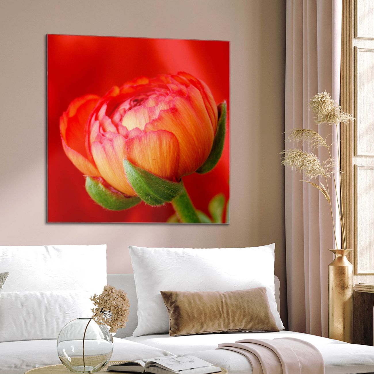 Quadratisches Wandbild aus Glas Ranunkel