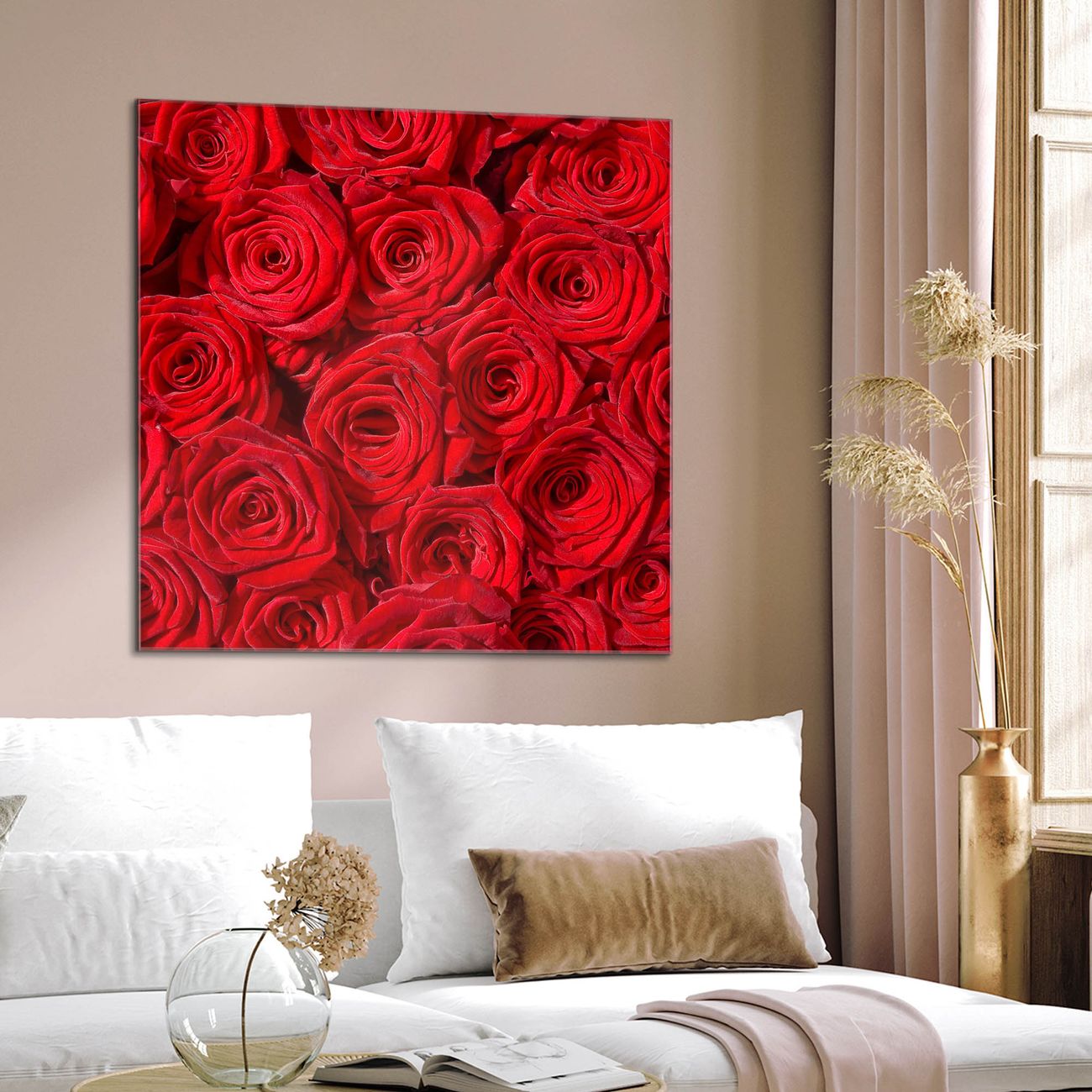 Quadratisches Wandbild aus Glas Rosenbett