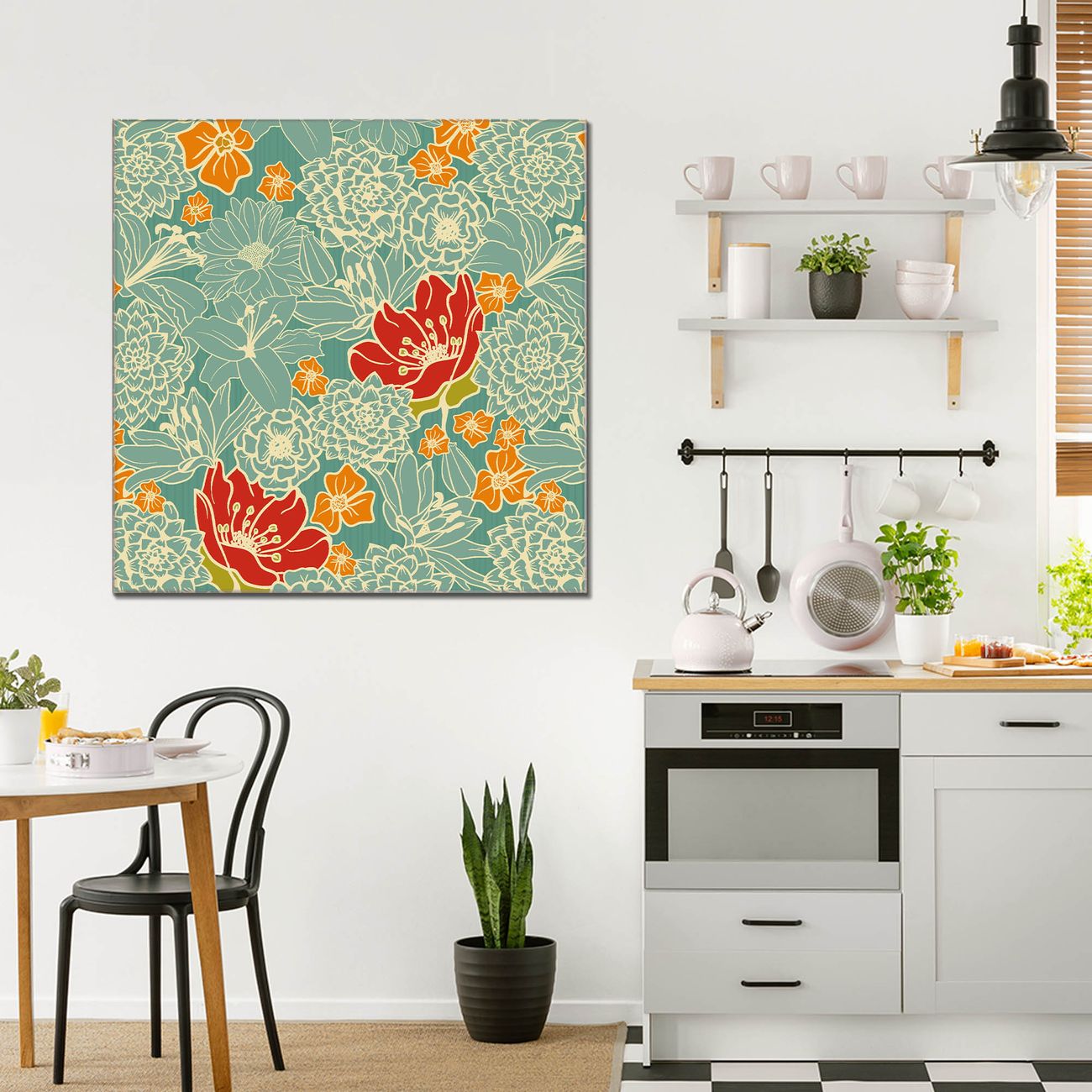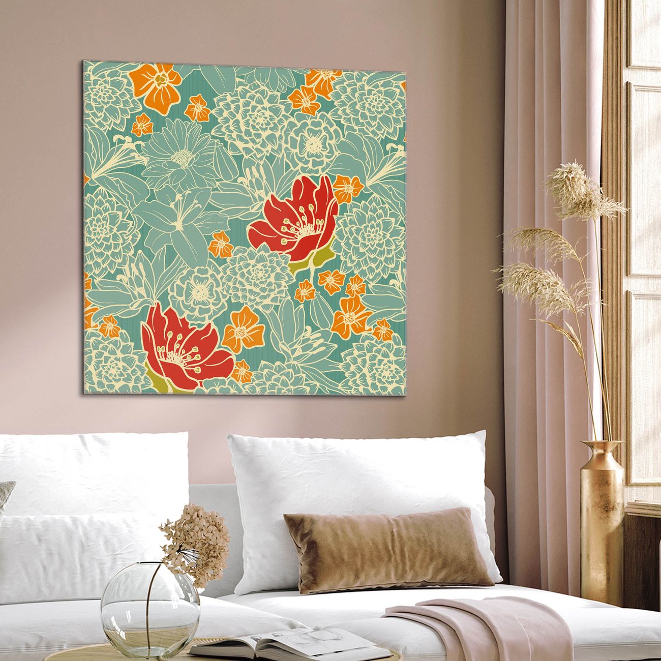 Quadratisches Wandbild aus Glas Rote Blumen