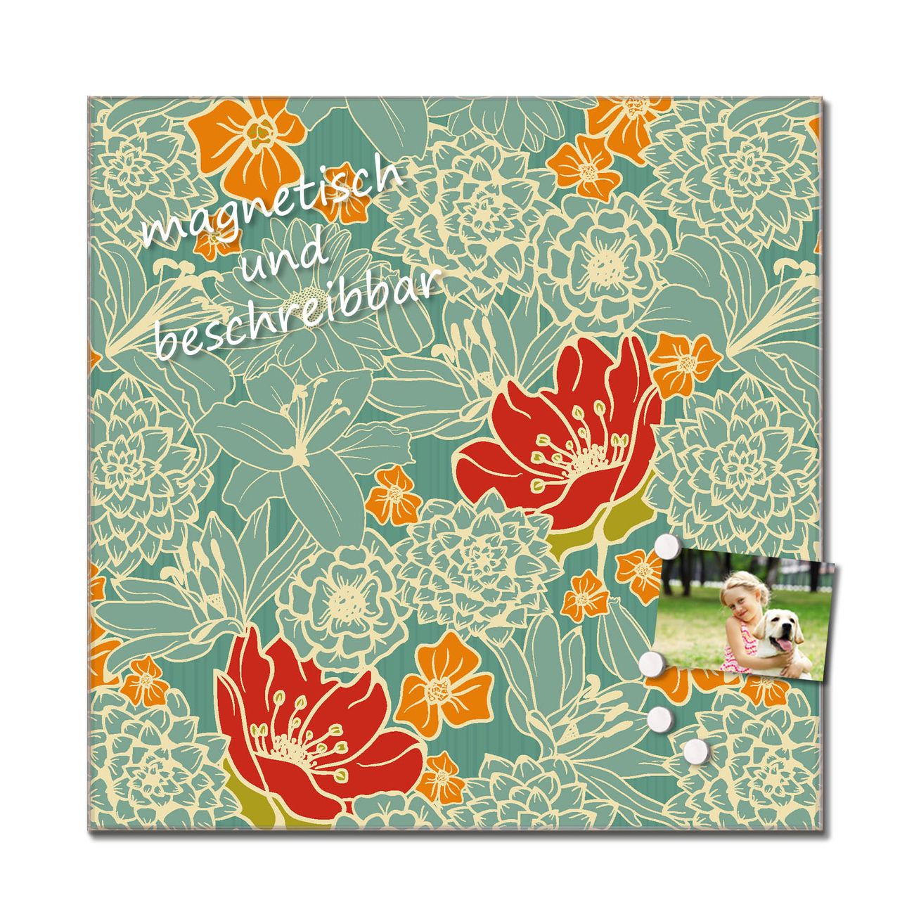 Das Glasbild besteht aus 4mm gehärtetem zertifiziertem ESG Sicherheitsglas, die Rückwand aus einem magnetischen Stahlblech. Durch die superflache Bauweise haben Sie die Wahl aus einer Vielzahl von Befestigungsmöglichkeiten. Sie können das Wandbild mit einem Montagekleber superflach an die Wand kleben oder Sie wählen eines unserer passenden Befestigungssets, welches eine optimale Montage garantiert. Durch die mitgelieferten 4 Neodym-Magnete ist Ihr Glaswandbild sofort einsatzbereit. Wir sind ein kleines Team aus dem Herzen von Sachsen und fertigen alle Artikel von Hand für Sie an. Wir entwerfen unsere Produkte selbst mit großer Liebe zum Detail.