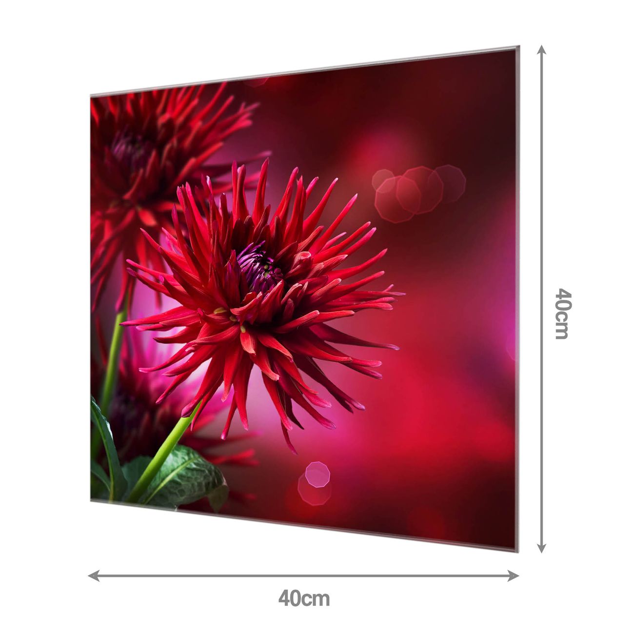Unsere einzigartigen Glasbilder im Querformat von banjado mit Motiv Rote Dahlien sind der absolute Hingucker! Unsere Banjado Glasbilder sind sehr begehrt, weil sie top verarbeitet sind und sich ganz leicht montieren lassen. Schon mit wenigen Handgriffen hängen sie an der Wand und strahlen mit höchster brillianz. Durch die Ramenlose Herstellung schwebt das Echtglasbild förmlich an der Wand. Das Motiv erscheint besonders ausdrucksstark und hochwertig und ist hinter dem Echtglas geschützt.