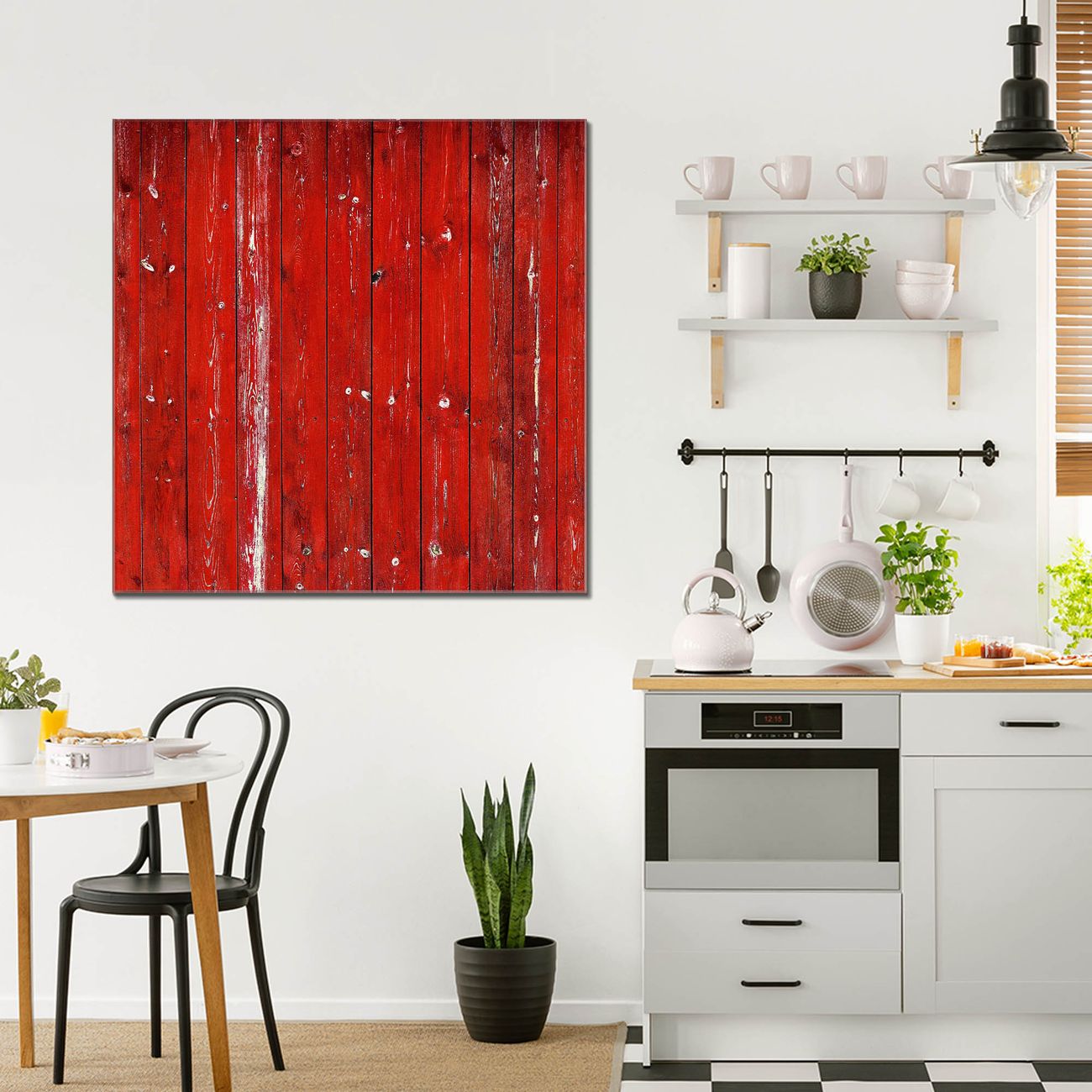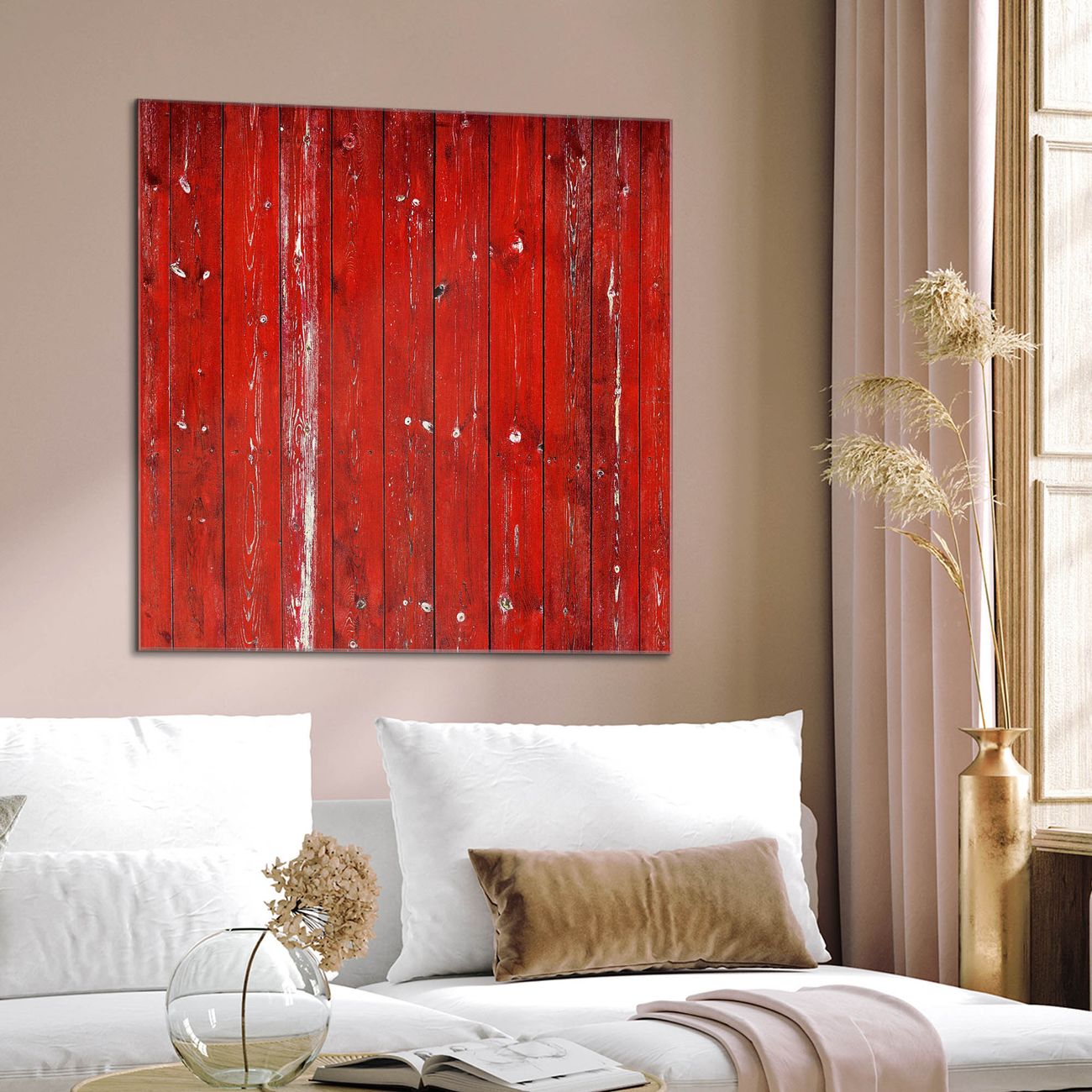 Quadratisches Wandbild aus Glas Rote Holzlatten