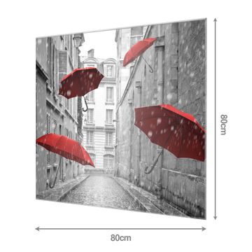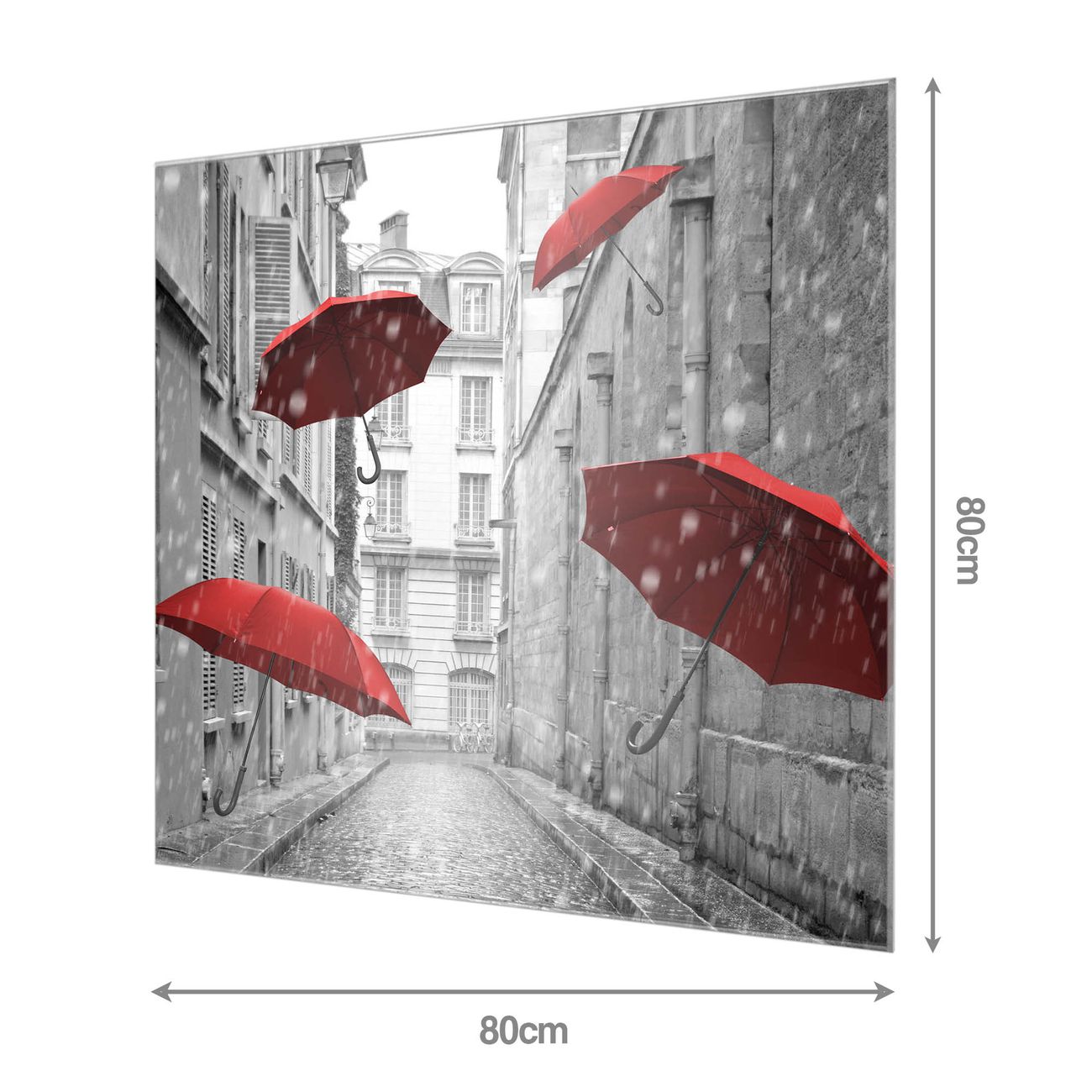 Unsere einzigartigen Glasbilder im Querformat von banjado mit Motiv Rote Schirme sind der absolute Hingucker! Unsere Banjado Glasbilder sind sehr begehrt, weil sie top verarbeitet sind und sich ganz leicht montieren lassen. Schon mit wenigen Handgriffen hängen sie an der Wand und strahlen mit höchster brillianz. Durch die Ramenlose Herstellung schwebt das Echtglasbild förmlich an der Wand. Das Motiv erscheint besonders ausdrucksstark und hochwertig und ist hinter dem Echtglas geschützt.