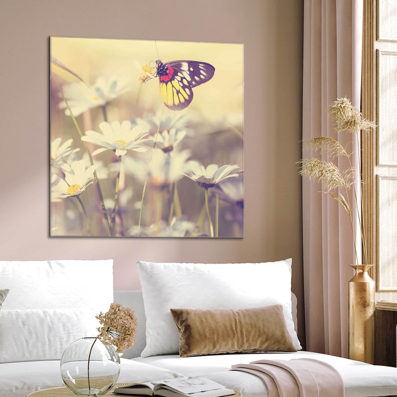 Quadratisches Wandbild aus Glas Rotgelber Falter