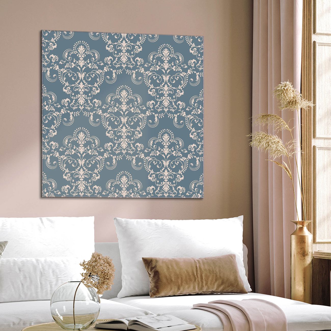 Quadratisches Wandbild aus Glas Royal Creme Blau