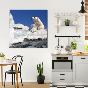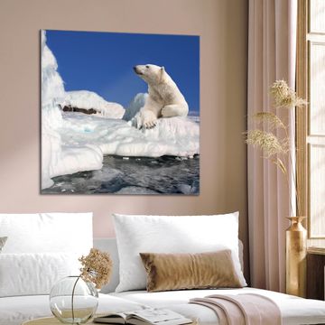 Quadratisches Wandbild aus Glas Ruhender Eisbär
