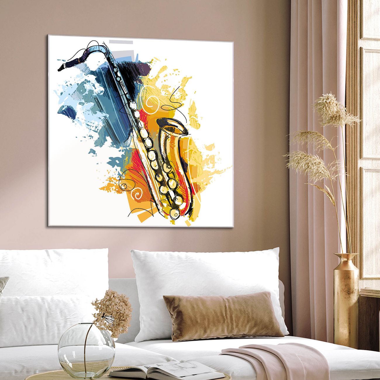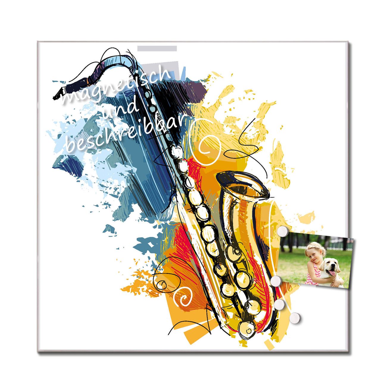 Quadratisches Wandbild aus Glas Saxophon