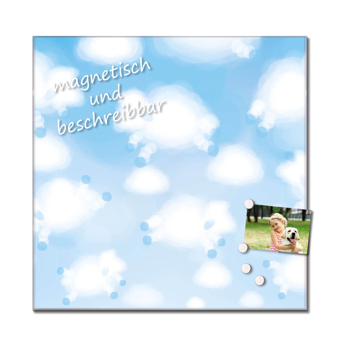 Das Glasbild besteht aus 4mm gehärtetem zertifiziertem ESG Sicherheitsglas, die Rückwand aus einem magnetischen Stahlblech. Durch die superflache Bauweise haben Sie die Wahl aus einer Vielzahl von Befestigungsmöglichkeiten. Sie können das Wandbild mit einem Montagekleber superflach an die Wand kleben oder Sie wählen eines unserer passenden Befestigungssets, welches eine optimale Montage garantiert. Durch die mitgelieferten 4 Neodym-Magnete ist Ihr Glaswandbild sofort einsatzbereit. Wir sind ein kleines Team aus dem Herzen von Sachsen und fertigen alle Artikel von Hand für Sie an. Wir entwerfen unsere Produkte selbst mit großer Liebe zum Detail.