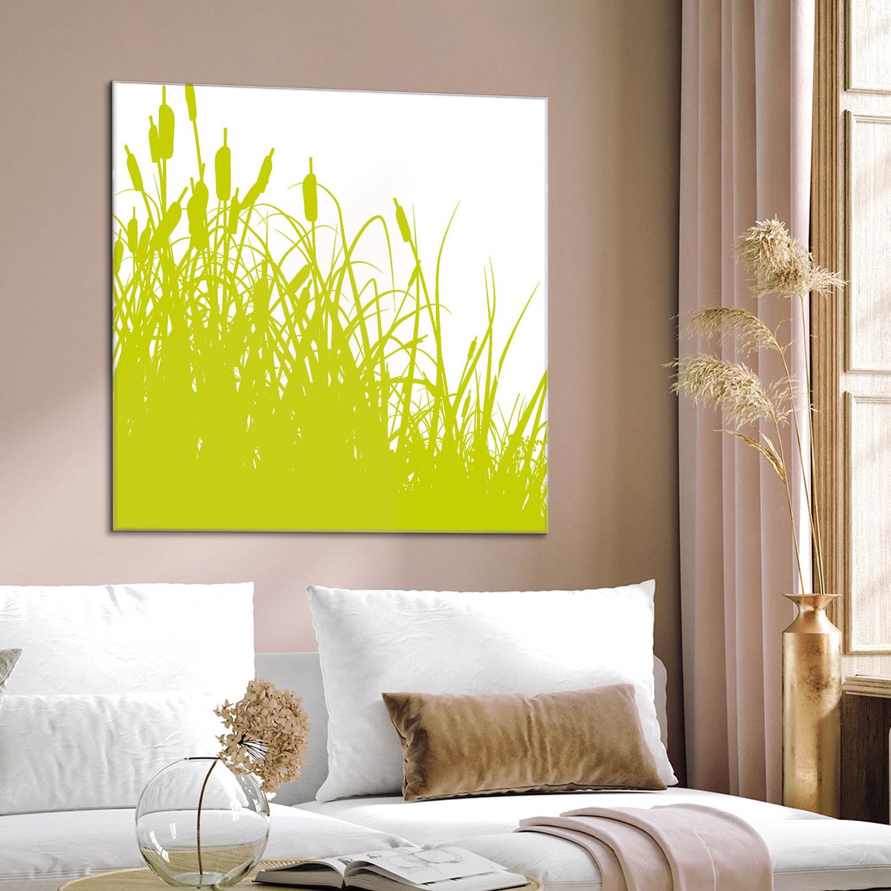 Quadratisches Wandbild aus Glas Schilf