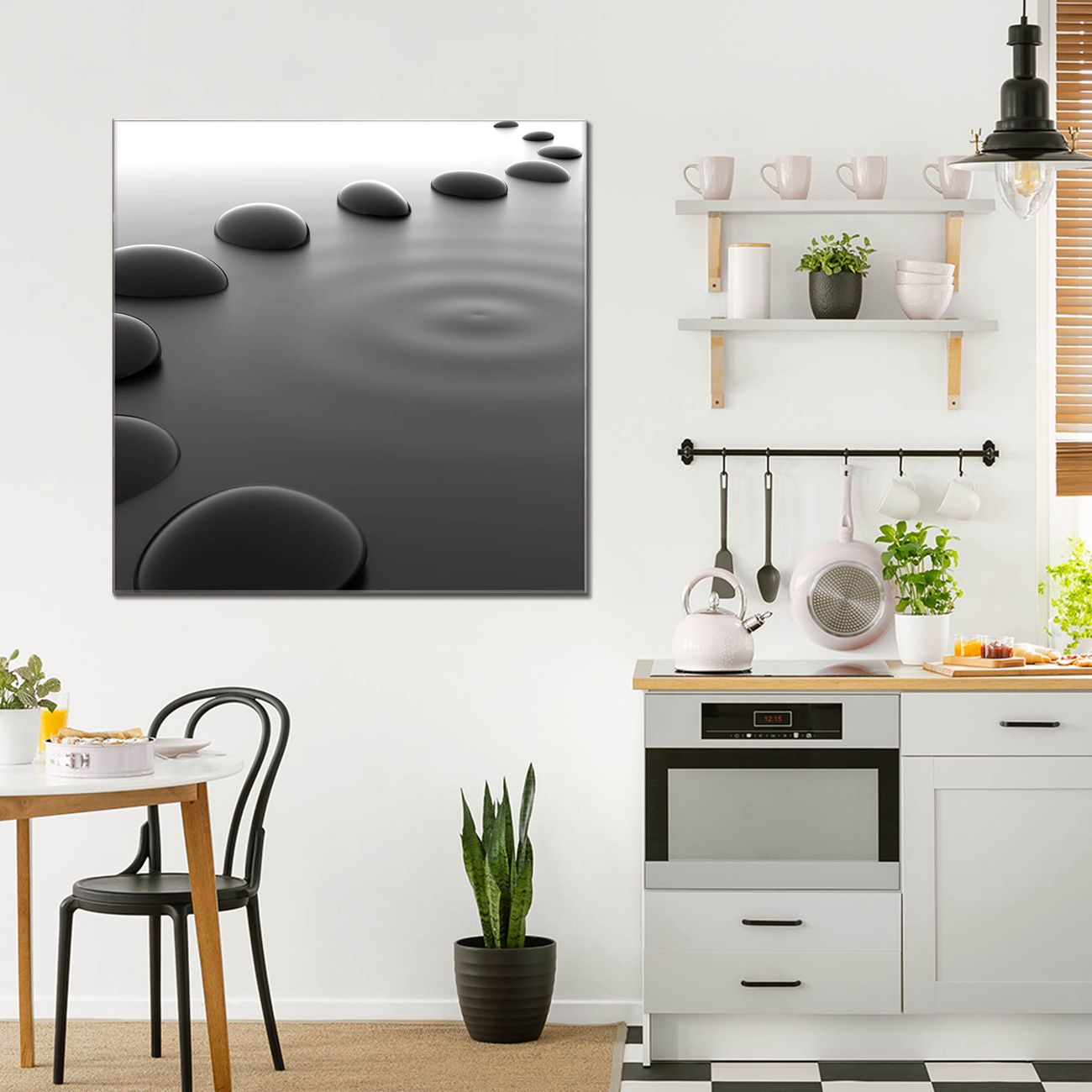 Quadratisches Wandbild aus Glas Schwarze Steine