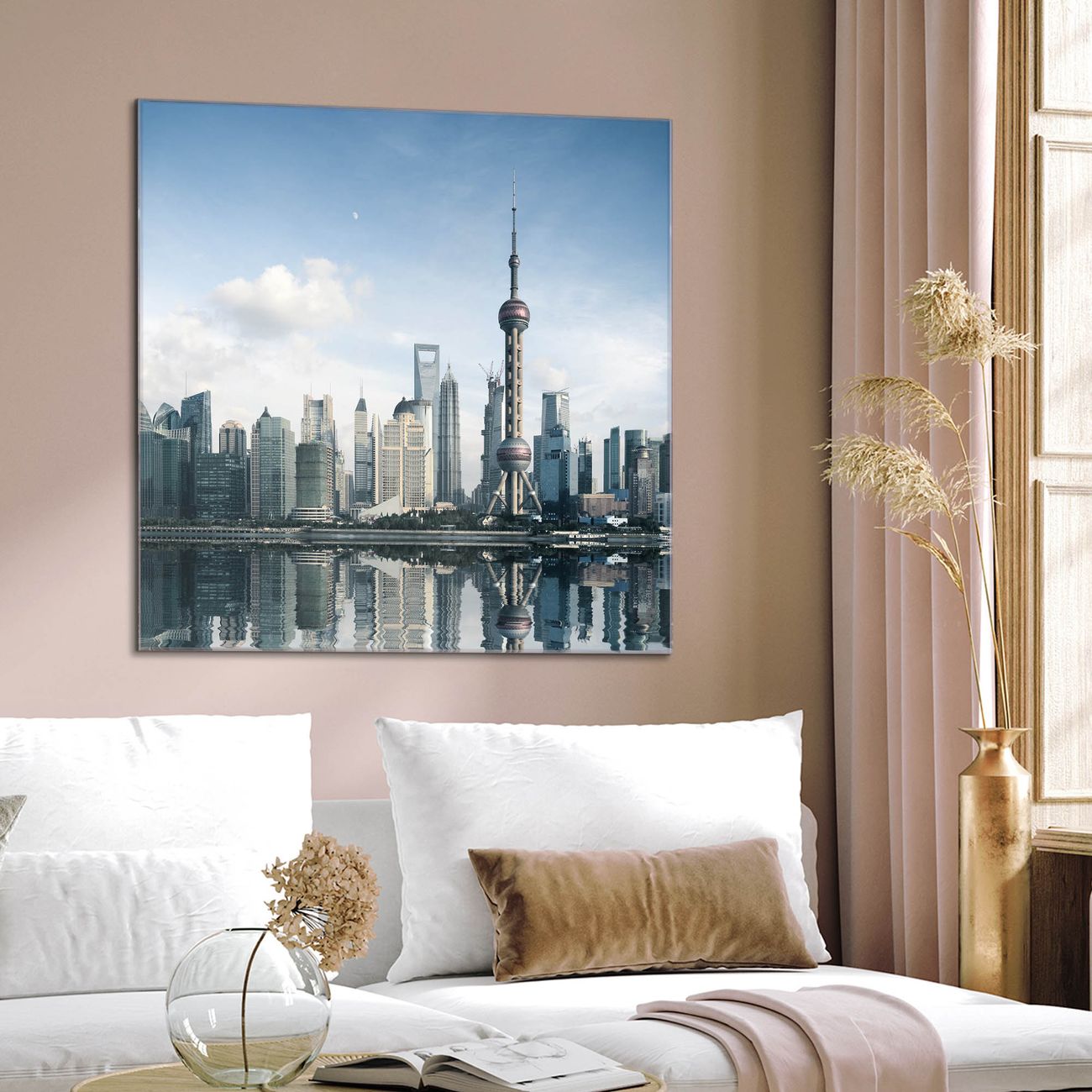 Quadratisches Wandbild aus Glas Shanghai