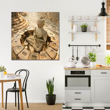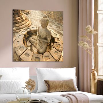 Quadratisches Wandbild aus Glas Sitzender Buddha