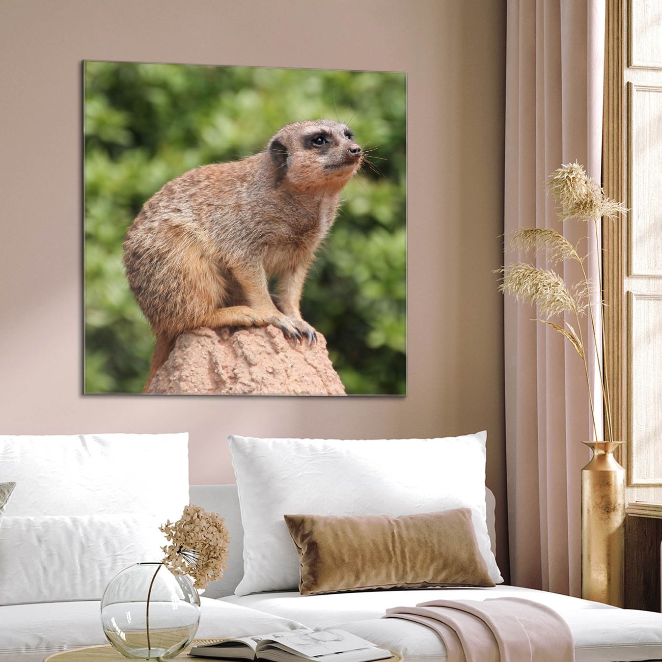 Quadratisches Wandbild aus Glas Sitzendes Erdmännchen