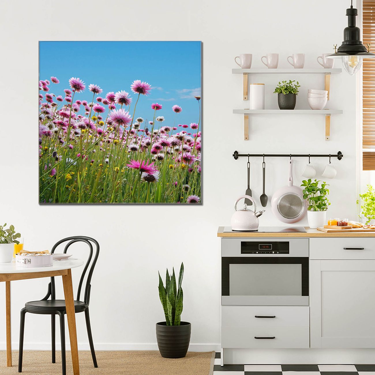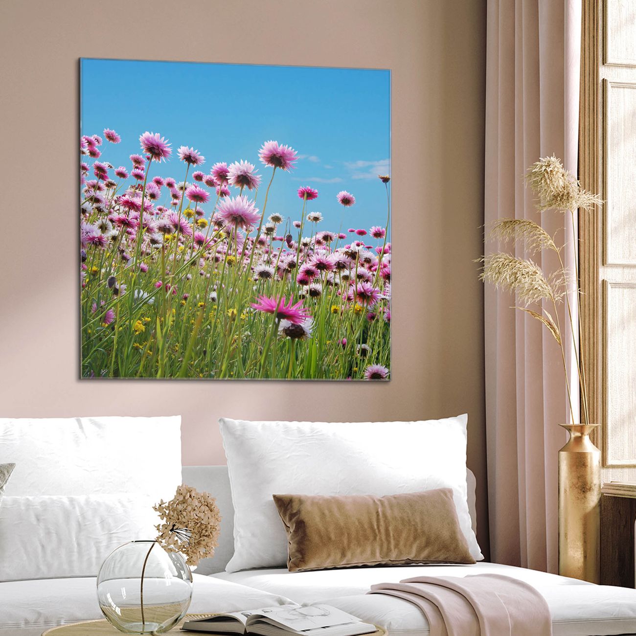 Unsere einzigartigen Glasbilder im Querformat von banjado mit Motiv Sommerblumen sind der absolute Hingucker! Unsere Banjado Glasbilder sind sehr begehrt, weil sie top verarbeitet sind und sich ganz leicht montieren lassen. Schon mit wenigen Handgriffen hängen sie an der Wand und strahlen mit höchster brillianz. Durch die Ramenlose Herstellung schwebt das Echtglasbild förmlich an der Wand. Das Motiv erscheint besonders ausdrucksstark und hochwertig und ist hinter dem Echtglas geschützt.