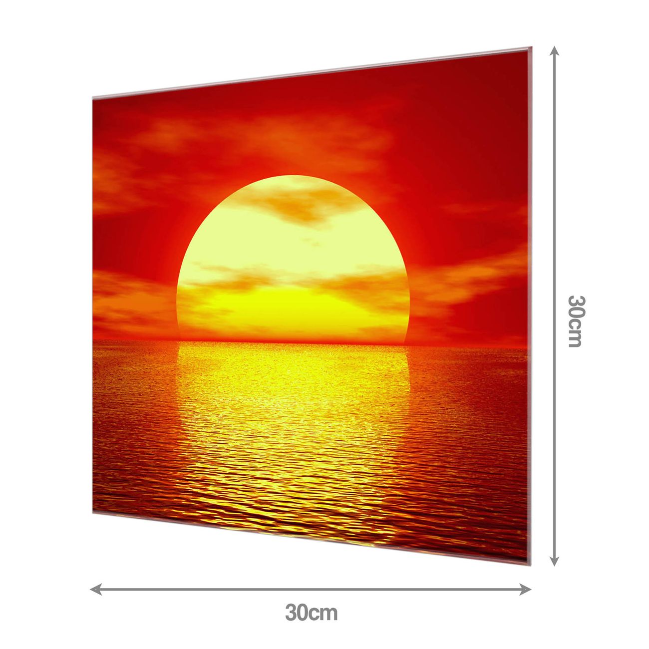 Unsere einzigartigen Glasbilder im Querformat von banjado mit Motiv Sonnenuntergang sind der absolute Hingucker! Unsere Banjado Glasbilder sind sehr begehrt, weil sie top verarbeitet sind und sich ganz leicht montieren lassen. Schon mit wenigen Handgriffen hängen sie an der Wand und strahlen mit höchster brillianz. Durch die Ramenlose Herstellung schwebt das Echtglasbild förmlich an der Wand. Das Motiv erscheint besonders ausdrucksstark und hochwertig und ist hinter dem Echtglas geschützt.
