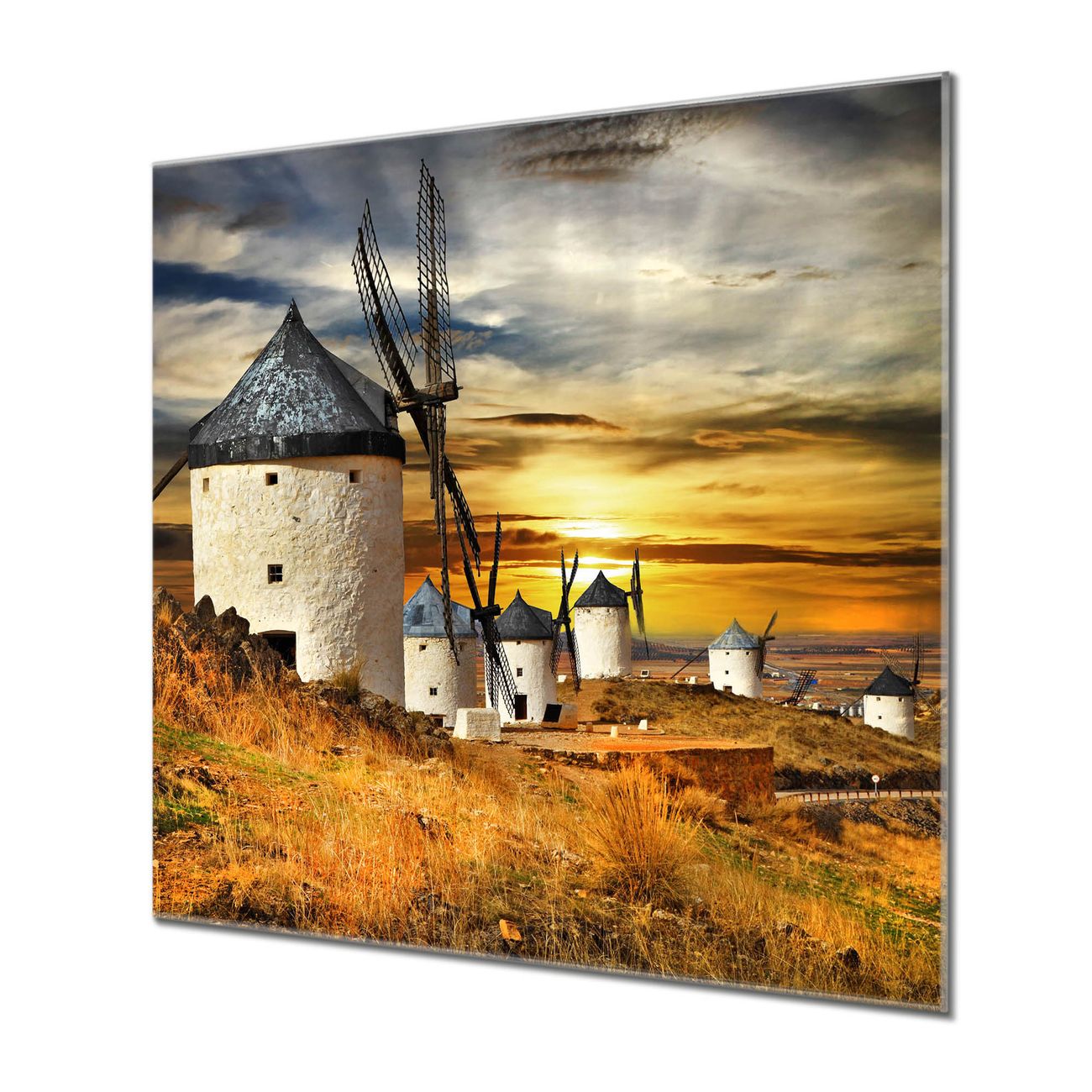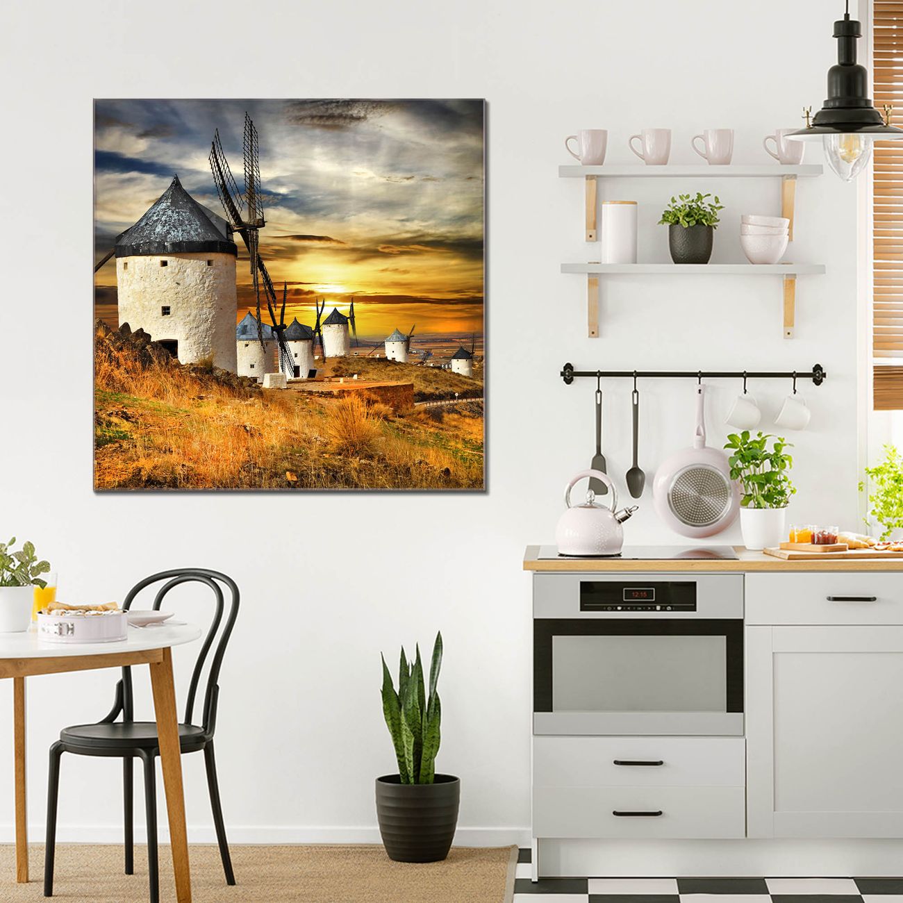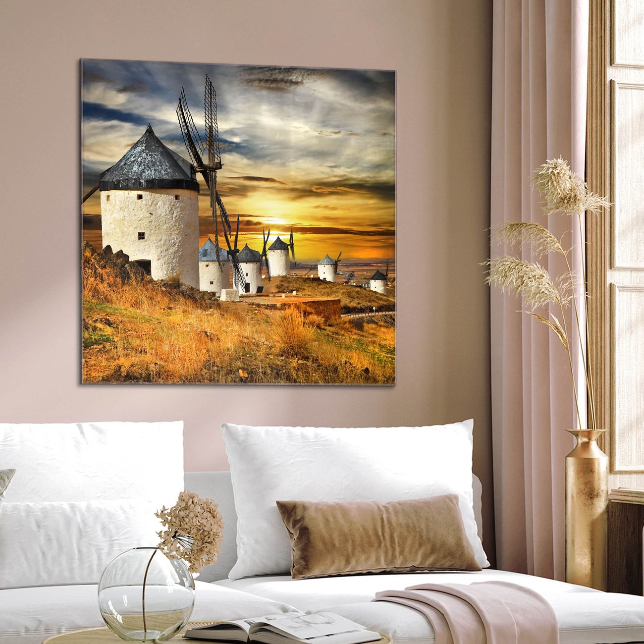 Quadratisches Wandbild aus Glas Spanische Windmühlen