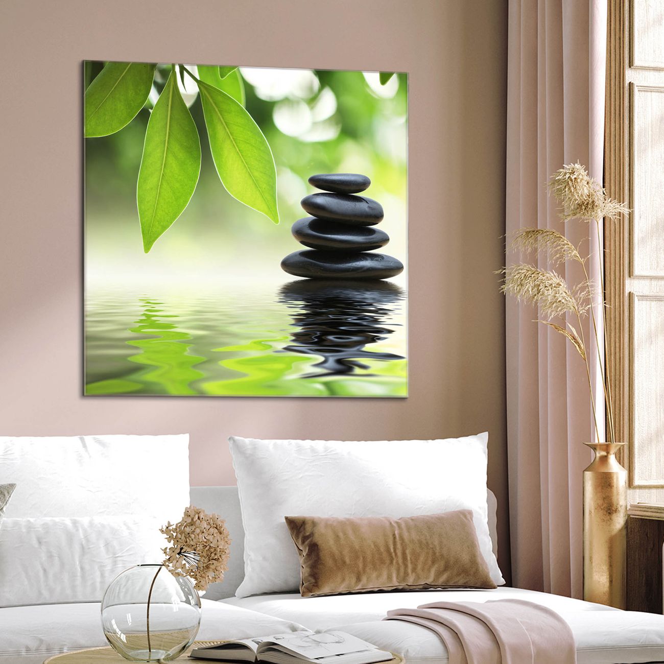 Unsere einzigartigen Glasbilder im Querformat von banjado mit Motiv Steine&Relax sind der absolute Hingucker! Unsere Banjado Glasbilder sind sehr begehrt, weil sie top verarbeitet sind und sich ganz leicht montieren lassen. Schon mit wenigen Handgriffen hängen sie an der Wand und strahlen mit höchster brillianz. Durch die Ramenlose Herstellung schwebt das Echtglasbild förmlich an der Wand. Das Motiv erscheint besonders ausdrucksstark und hochwertig und ist hinter dem Echtglas geschützt.