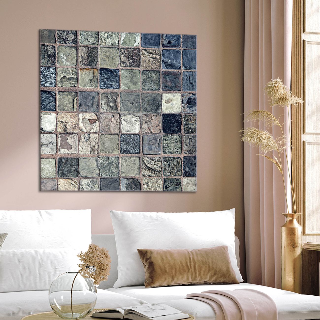 Unsere einzigartigen Glasbilder im Querformat von banjado mit Motiv Steinfliesen sind der absolute Hingucker! Unsere Banjado Glasbilder sind sehr begehrt, weil sie top verarbeitet sind und sich ganz leicht montieren lassen. Schon mit wenigen Handgriffen hängen sie an der Wand und strahlen mit höchster brillianz. Durch die Ramenlose Herstellung schwebt das Echtglasbild förmlich an der Wand. Das Motiv erscheint besonders ausdrucksstark und hochwertig und ist hinter dem Echtglas geschützt.
