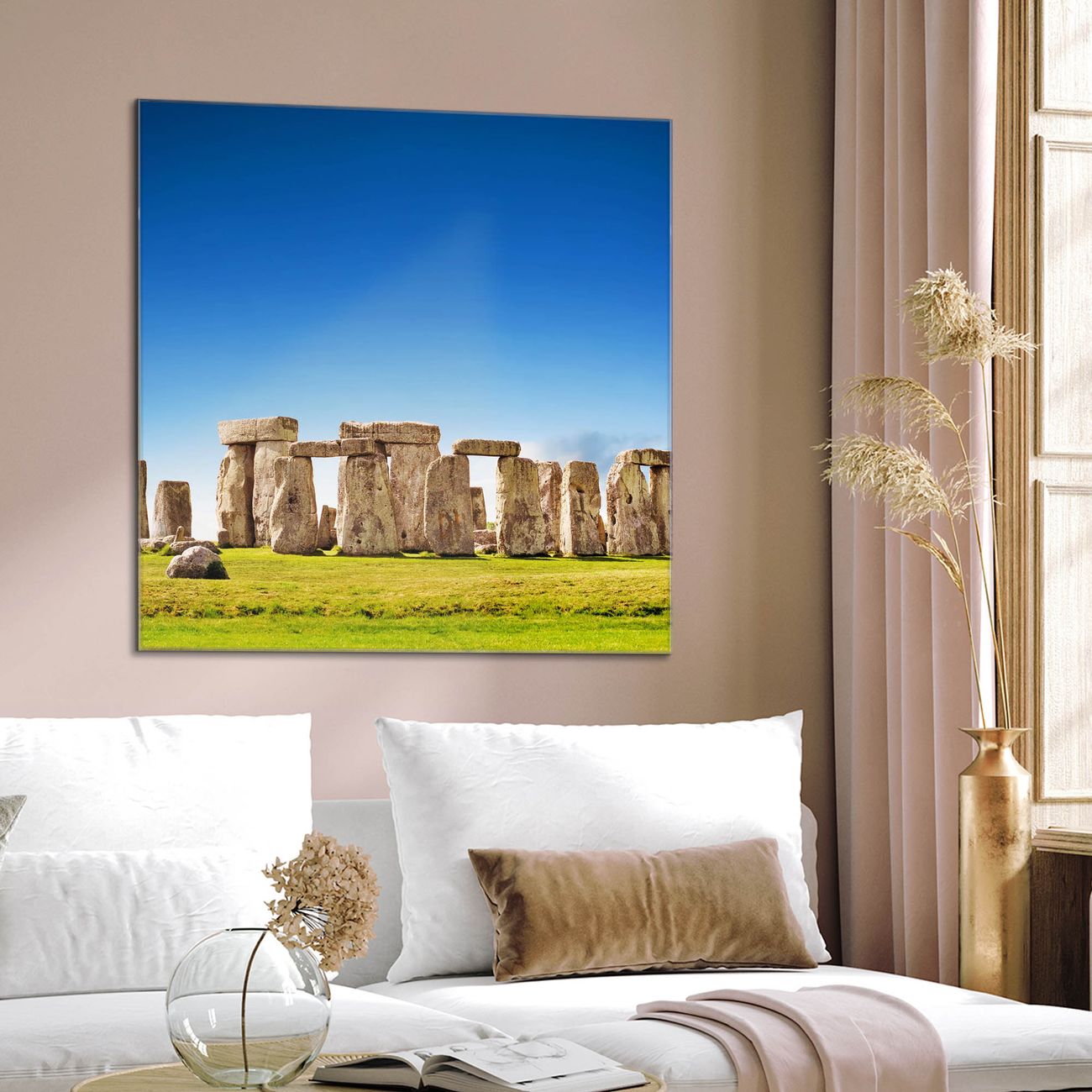 Quadratisches Wandbild aus Glas Stonehenge