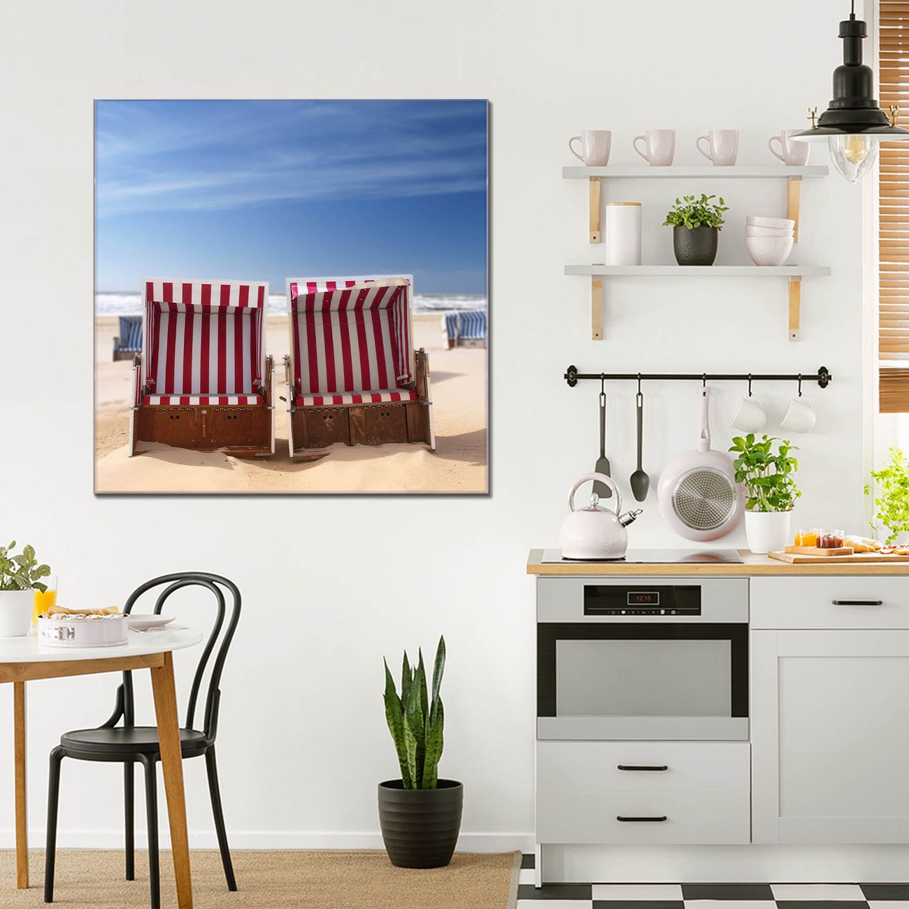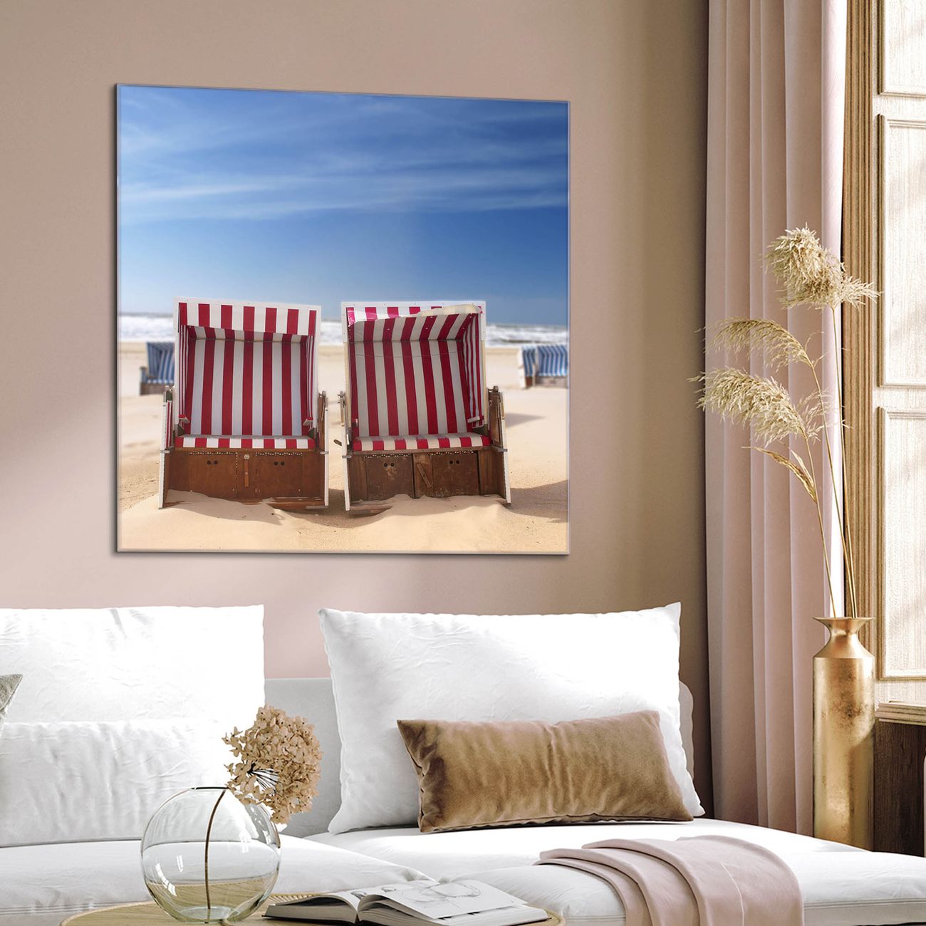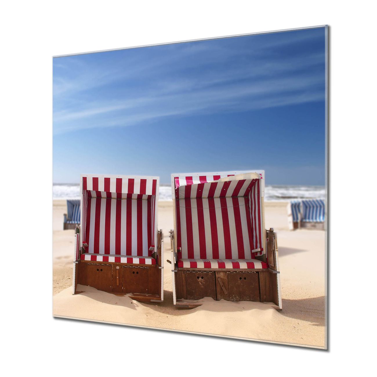 Quadratisches Wandbild aus Glas Strandkörbe